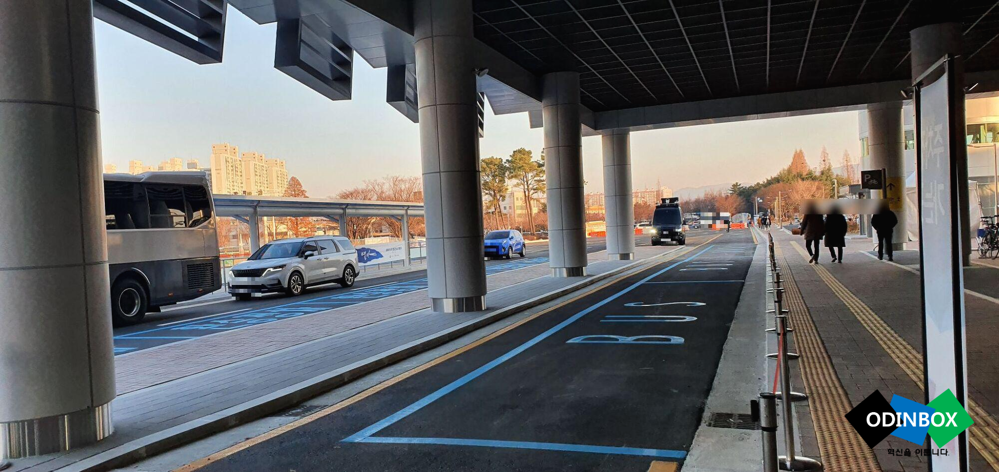 현재 제가 살고 있는 곳에서 가까운 망양역을 개통[28일] 첫날에 맞춰 이용을 하려고 합니다. 망양역의 경우 진입로에 버스와 택시/자가용이 따라갈 수 있는 길이 있습니다. 그리고 그 옆으로 작은 주차장이 있습니다. 망양역의 입구는 울산역의 앞과 비슷한 모습을 보입니다.