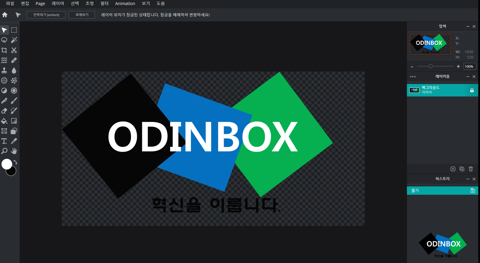 이미지 열기를 누르면 현재 PC에서 저장된 이미지를 열 수 있는 창이 하나 나오게 되어 선택을 하게 되면 이미지를 편집 할 수 있습니다. 또한 만약에 사용을 하다 갑작스레 인터넷 브라우저가 종료가 되면 기존에 진행하던 프로젝트를 바로 볼 수 있도록 만들어져 있습니다. 저의 로고를 한번 열어봤는데 포토샵과 비교하면 물론 세부적으로 차이는 있지만 저희가 일반적인 사진 편집을 할 때는 전혀 문제가 안될 만큼 준수한 기능을 무료로 제공을 해줍니다.