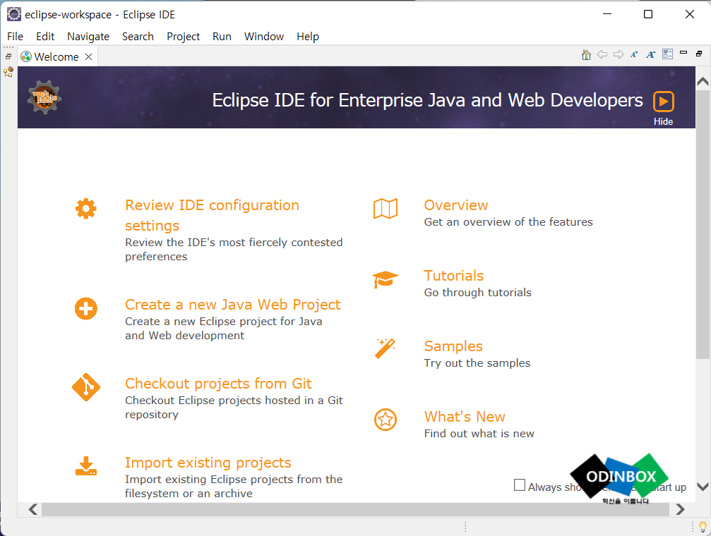 잠시 후 이클립스가 정상적으로 실행이 된 것을 확인을 할 수 있습니다. 이렇게 다운로드부터 설치까지 해보았습니다. 혹시나 진행을 하시면서 모르는 거나 궁금하신 사항이 있다면 댓글로 남겨주시면 답변드리도록 하겠습니다.