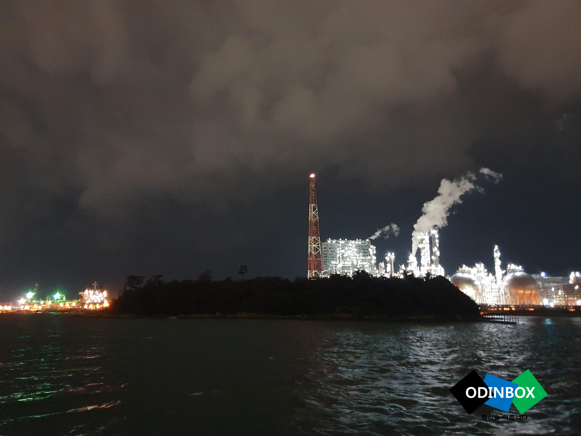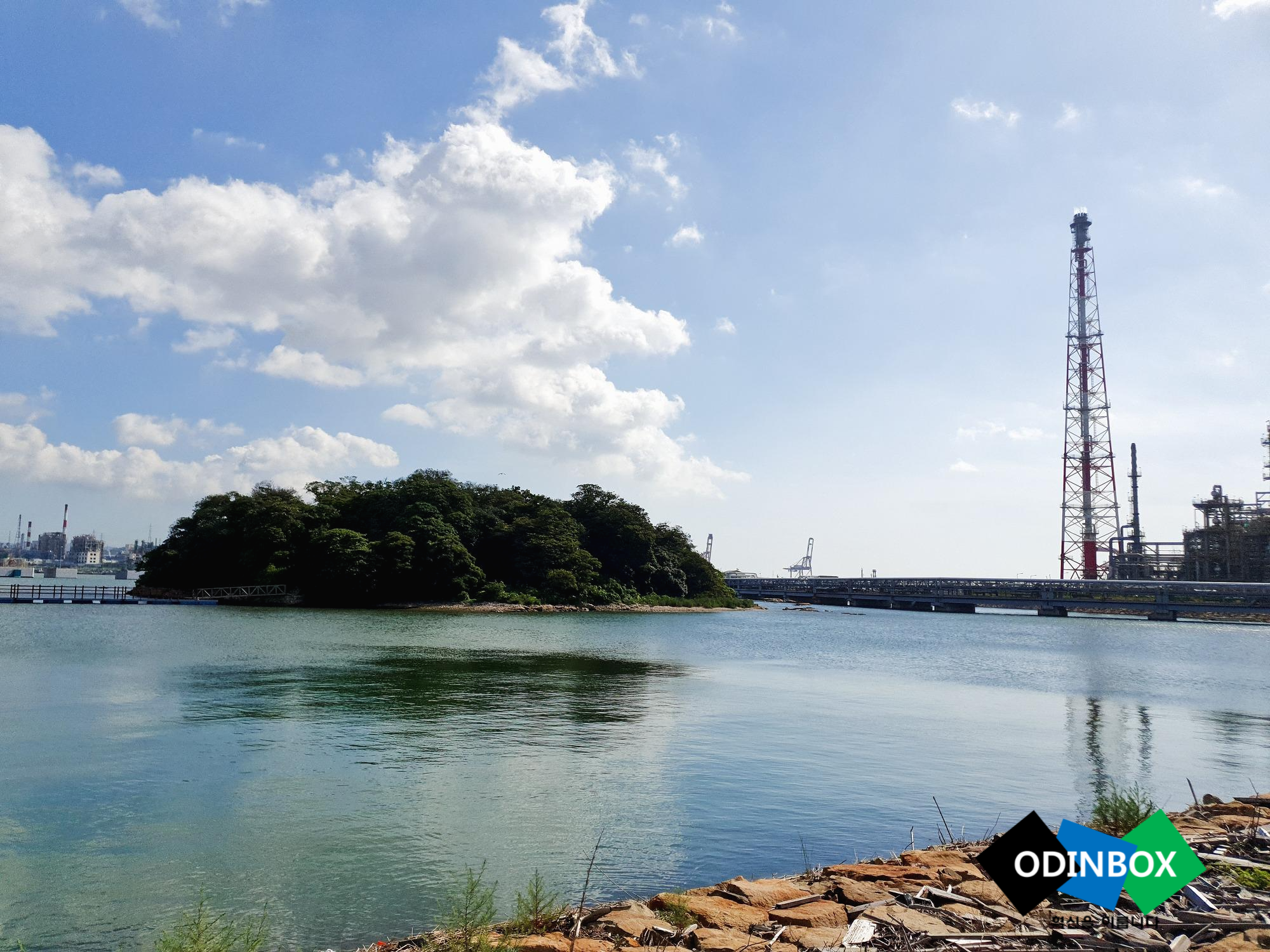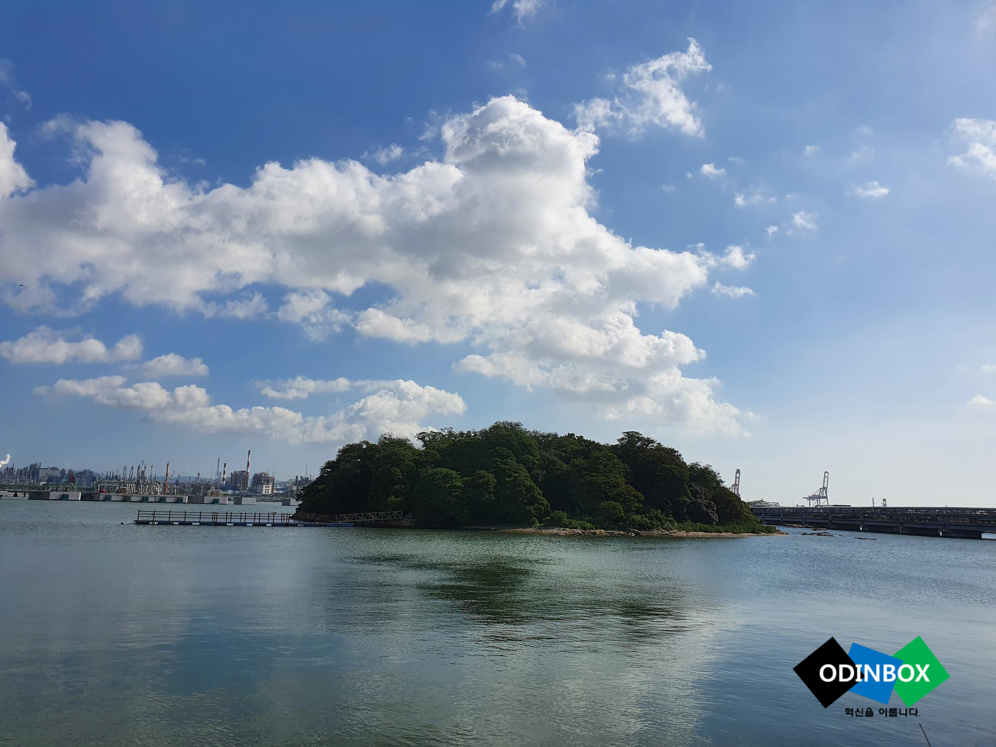 저의 주위는 회색 빛의 공장과 기름배가 있지만 저는 이 곳을 지키고 있습니다.