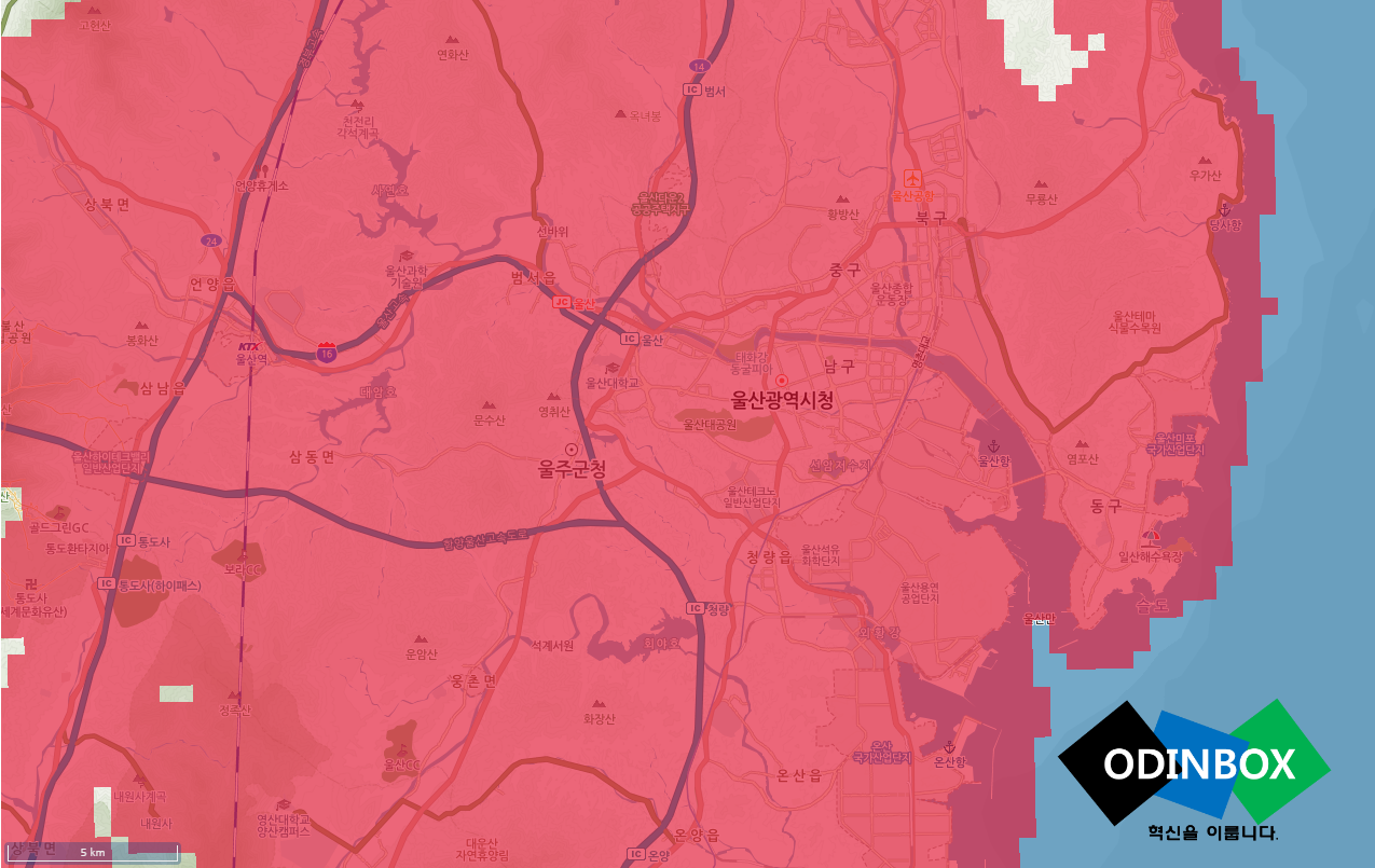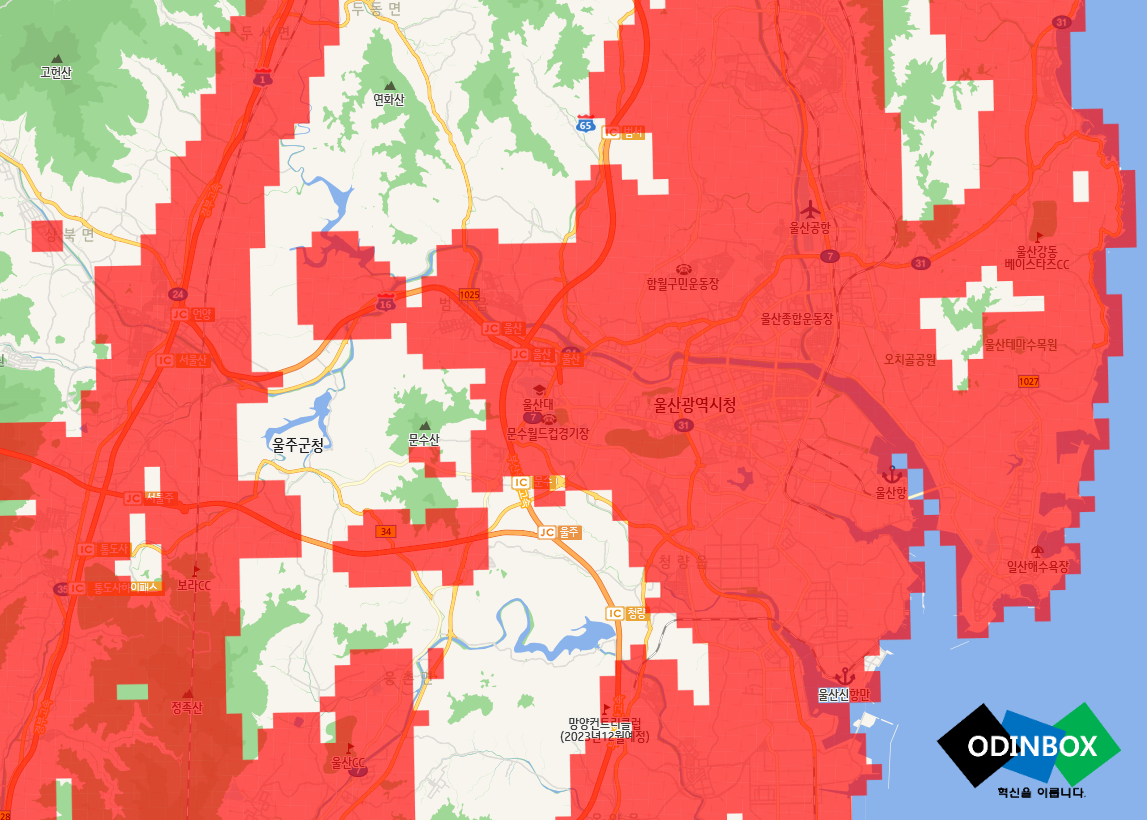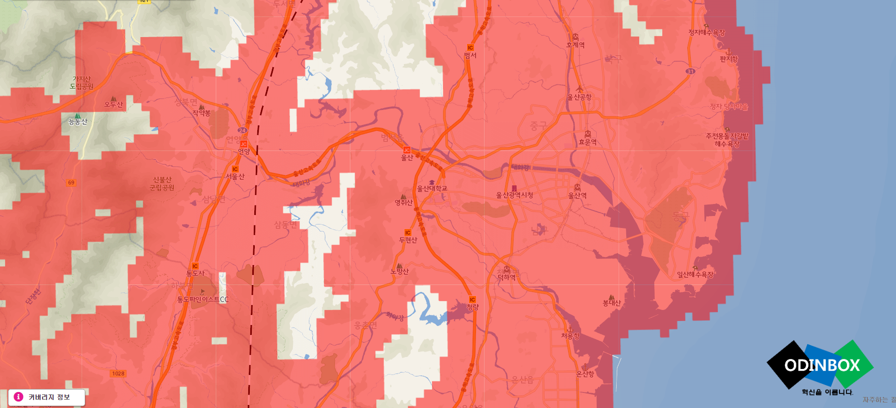 지도 상으로 울산의 경우 무룡산 일부와 울주군 일부를 제외하면 전부 지원을 한다고 표시가 되어져있습니다.