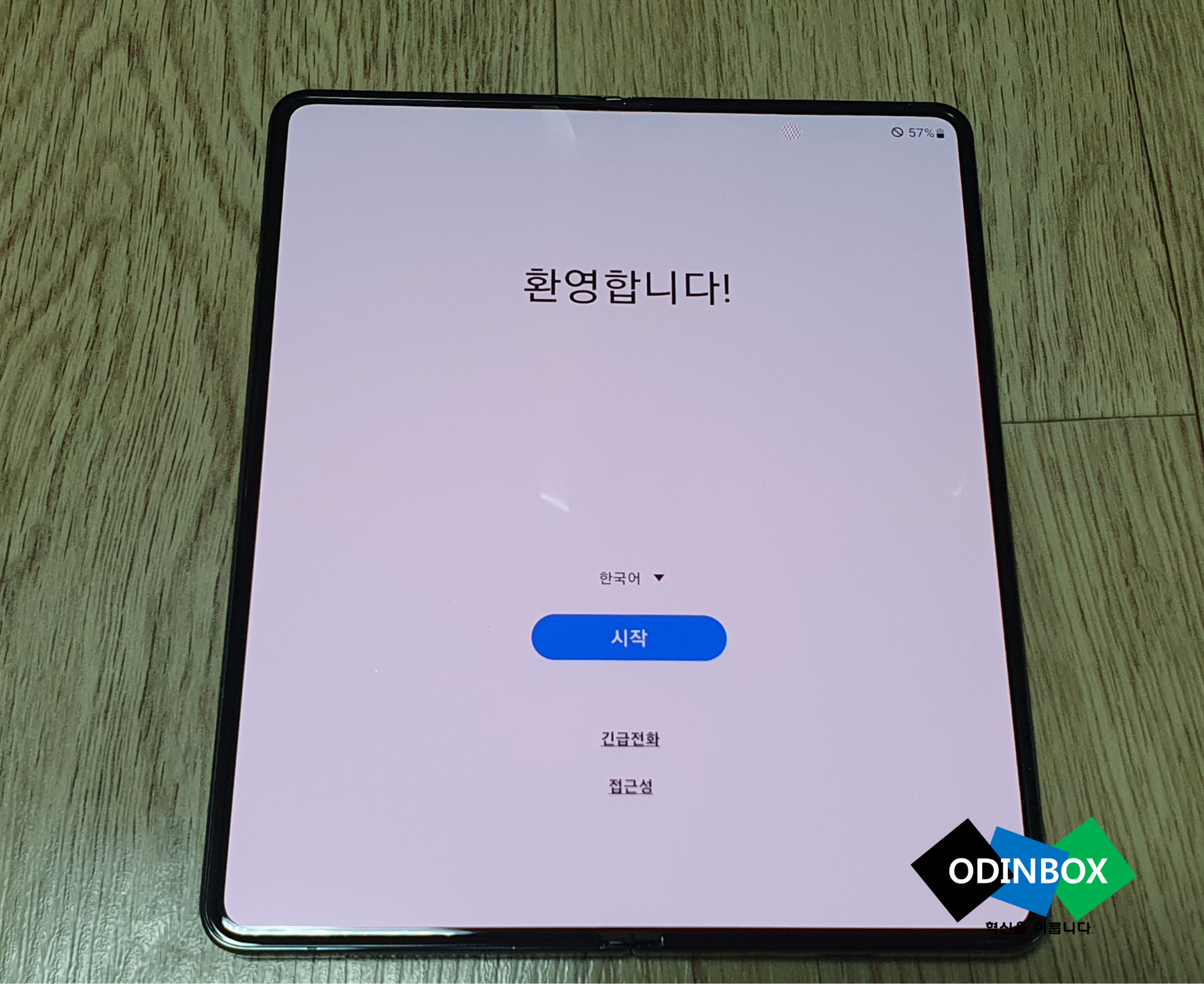 그레이 그린 폴드4를 받기 전 색상 확인을 위해 디지털프라자에서 직접 볼 수 있었는데 그때 이쁘다는 감정이 있었지만 실제로 새 것을 받고 보니 더욱 이쁩니다. 초기 설정을 위해 전원을 켜고 설정을 마쳤습니다.
