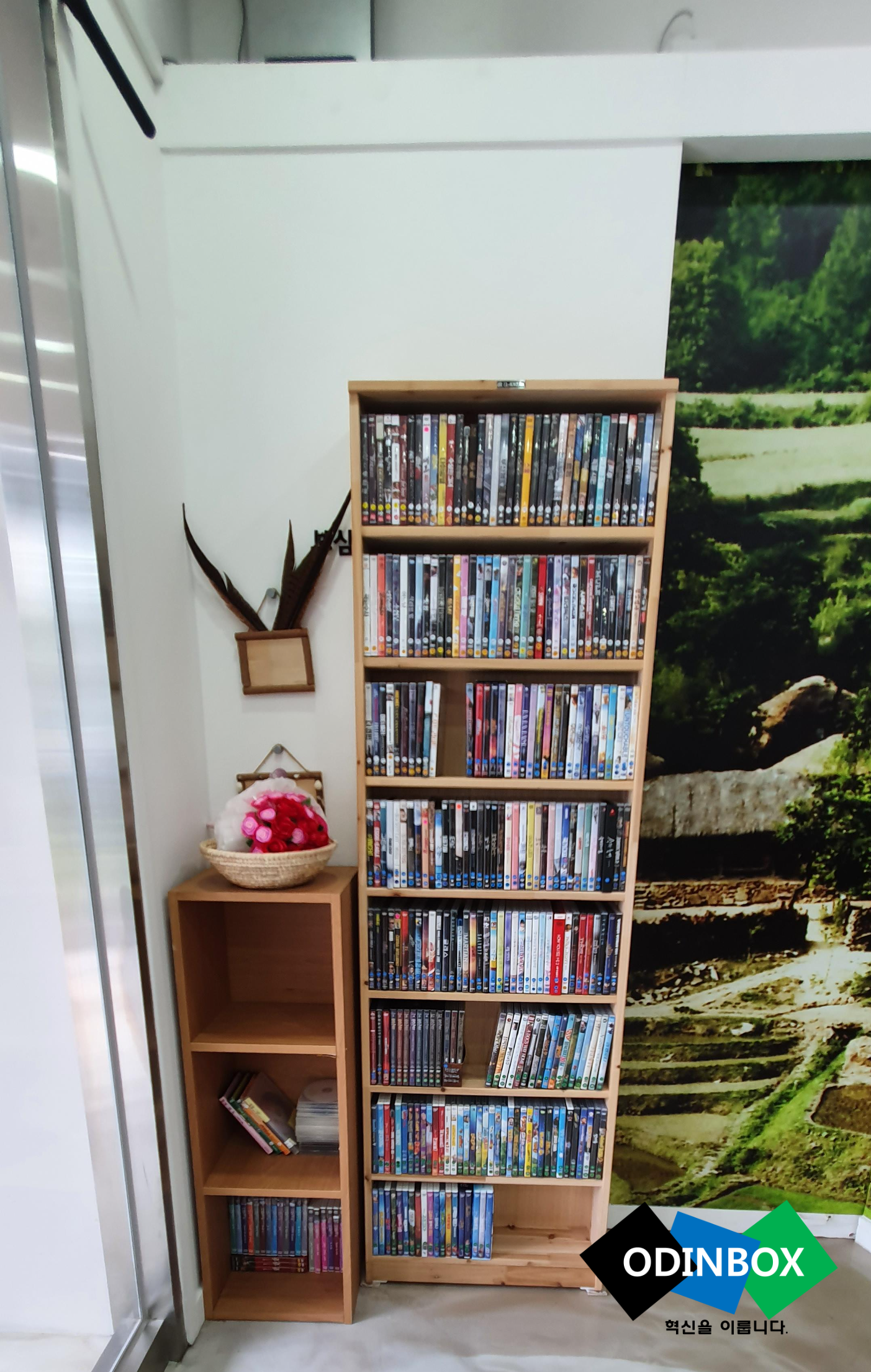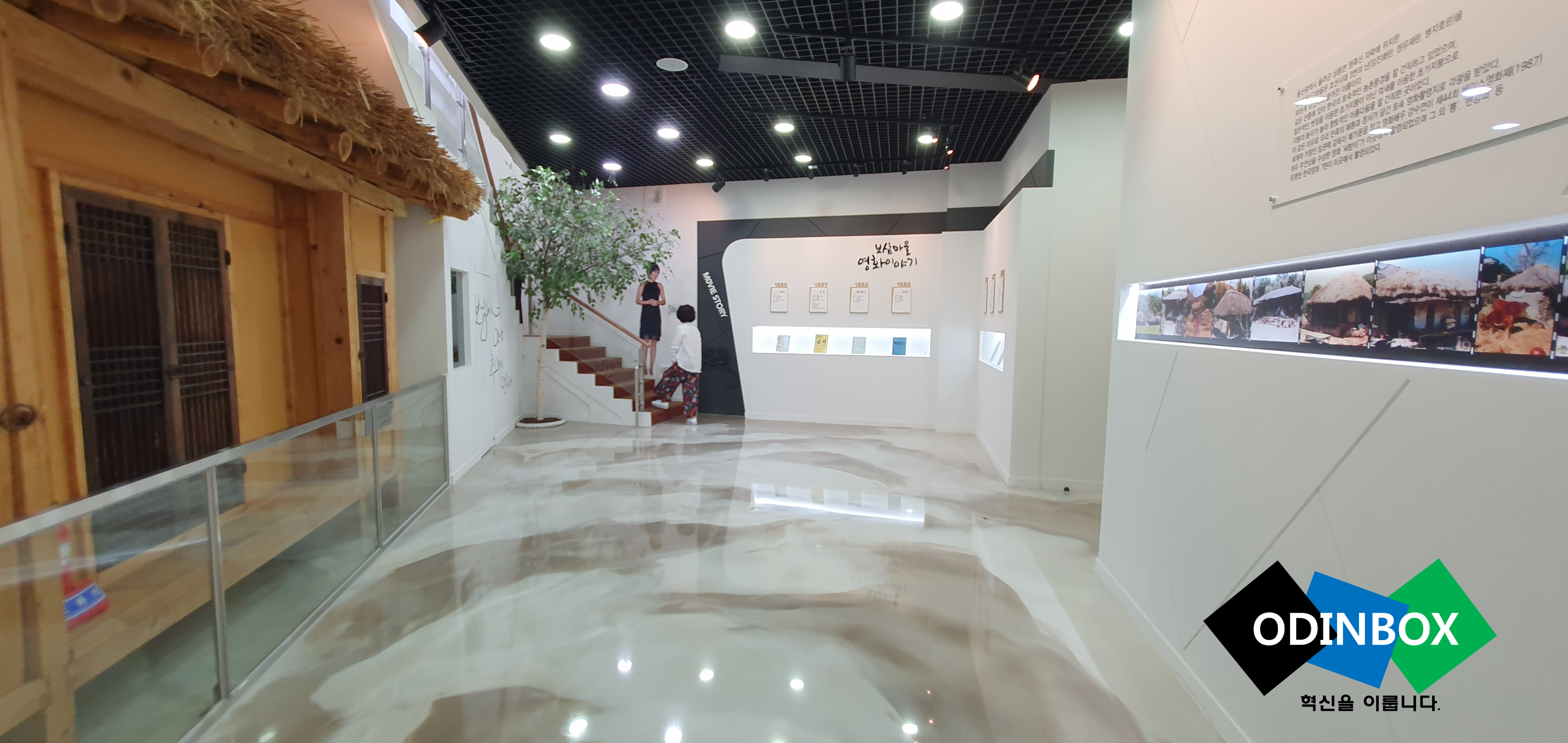 입구에 들어가게 되면 안내데스크와 함께 왼쪽에 보면 수많은 영화 CD들이 보이게 됩니다. 이것들은 글 마지막에 소개하게 될 것으로 이런 것들이 있다는 생각만 하시면 될 것 같습니다. 1층에 들어오게 되면 왼쪽에 보이는 것이 바로 영화 촬영 당시 보삼마을에 실제로 촬영을 했었던 초가집을 재현한 모습입니다. 그리고 오른쪽에는 영화가 촬영된 시기와 함께 그 모습을 볼 수 있고 앞쪽에 보이는 것은 그 당시 영화가 촬영되고 나왔던 실물을 볼 수 있습니다. 그리고 그 옆으로 조그마한 시청각실과 비슷한 곳이 만들어져 있는데 이곳이 정말 잘 만들어져 있었습니다.