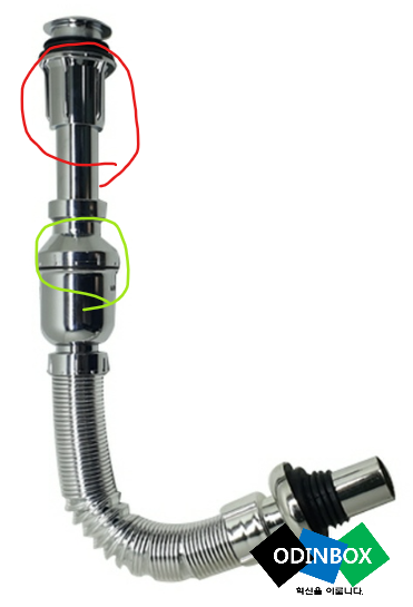 사진 속 빨간색으로 동그란 색으로 된 부분을 돌리게 되면 분리가 됩니다. 그러면 윗부분은 세면대 쪽에서 꽂고 밑에 부분은 아래쪽에서 결합을 하여 조립을 하면 됩니다. 여기서 중요한 것은 동본 되어 온 고무패킹 부분을 정상적으로 결합을 해야 합니다. 여기서 정상적으로 안 하고 조립을 하게 되면 물이 줄줄 새는 것을 볼 수 있습니다. 그리고 밑에 초록색으로 원을 그린 부분은 머리카락이나 이물질이 걸리는 부분입니다. 대부분 물이 이전처럼 빨리 안 내려가게 되면 이 부분을 열어 청소를 하게 되면 다시 정상적으로 물이 배수되는 것을 확인을 할 수 있습니다. 조립을 하고 물이 새는 부분이 있는지 정상적으로 내려가는지 확인을 합니다.