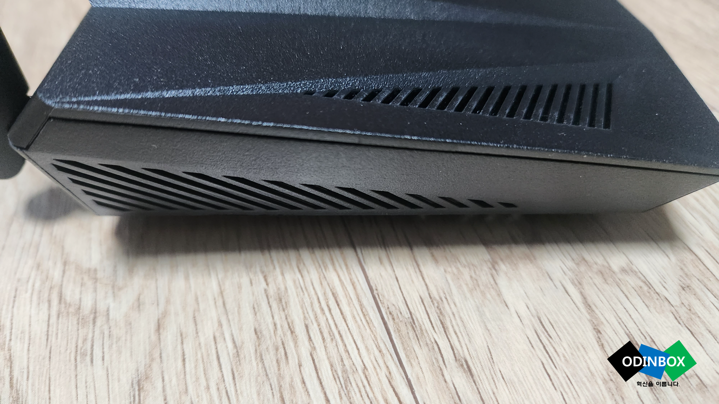 제품은 어두운 색으로 되어있고 생가보다 크기가 큽니다. 혹시나 해당 공유기를 생각하는 분들은 자리가 어느 정도 차지하고 있으니 여유공간을 확인을 하고 구매를 하셔야합니다. 그리고 제품의 발열을 위해 신경을 쓴 모습을 보입니다만 인터넷의 후기들을 보면 저렇게 발열을 위해 통풍을 설계를 했지만 발열이 어느정도 있다고 하긴 합니다 그리고 후면에 보면 WAN 포트 1개, 나머지 랜 포트 4개, USB 2개, WPS 등을 지원을 하며 전원을 껐다 켰다 할 수 있는 버튼이 있는 것을 볼 수 있습니다.