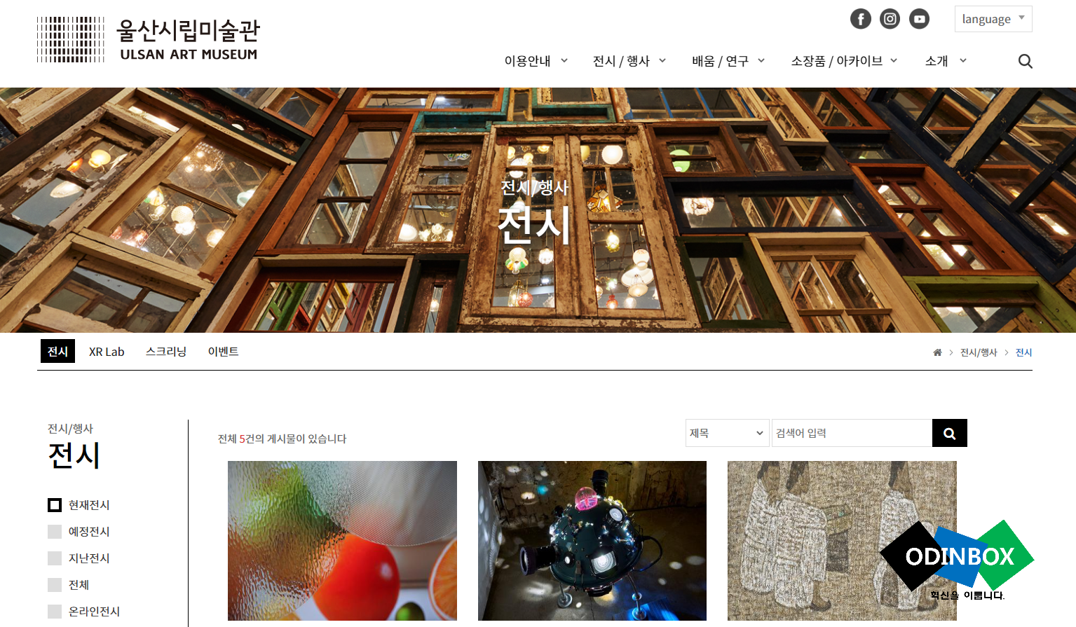 울산시립미술관 전시 및 행사를 알고 싶다면 울산시립미술관[#] 홈페이지를 통해 알 수 있습니다. 제가 방문을 했을 때 전시 및 행사는 아래와 같습니다.