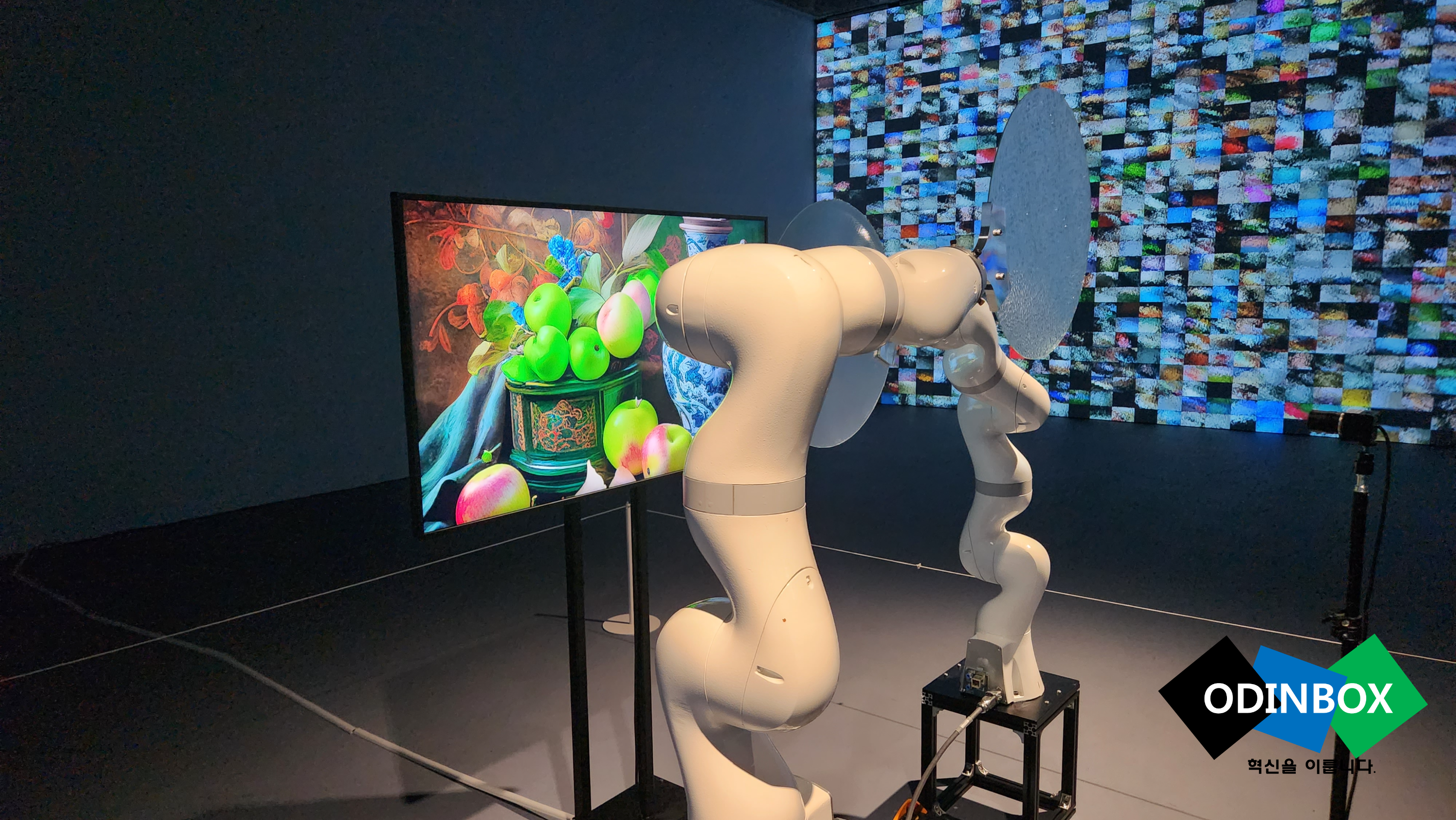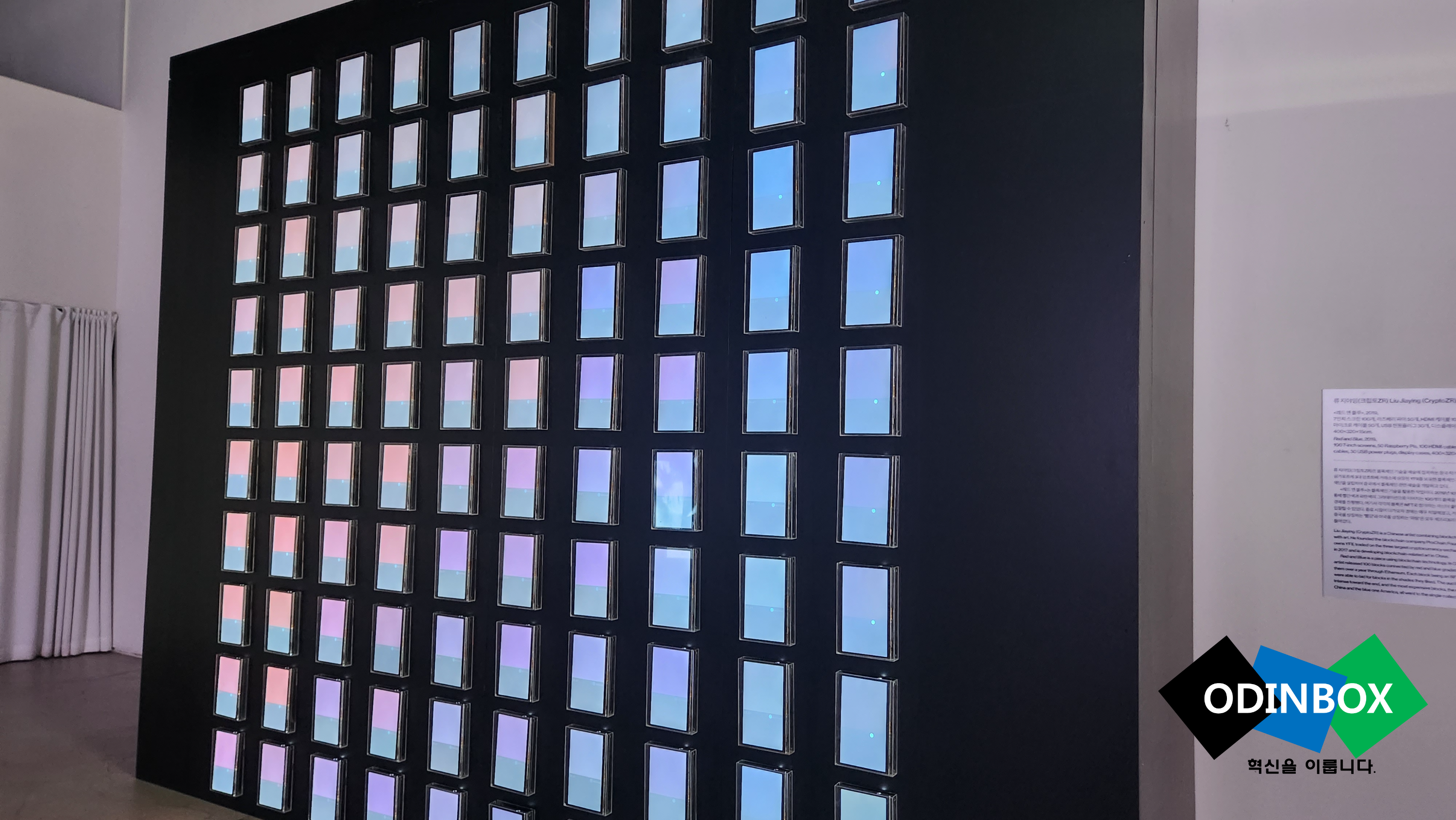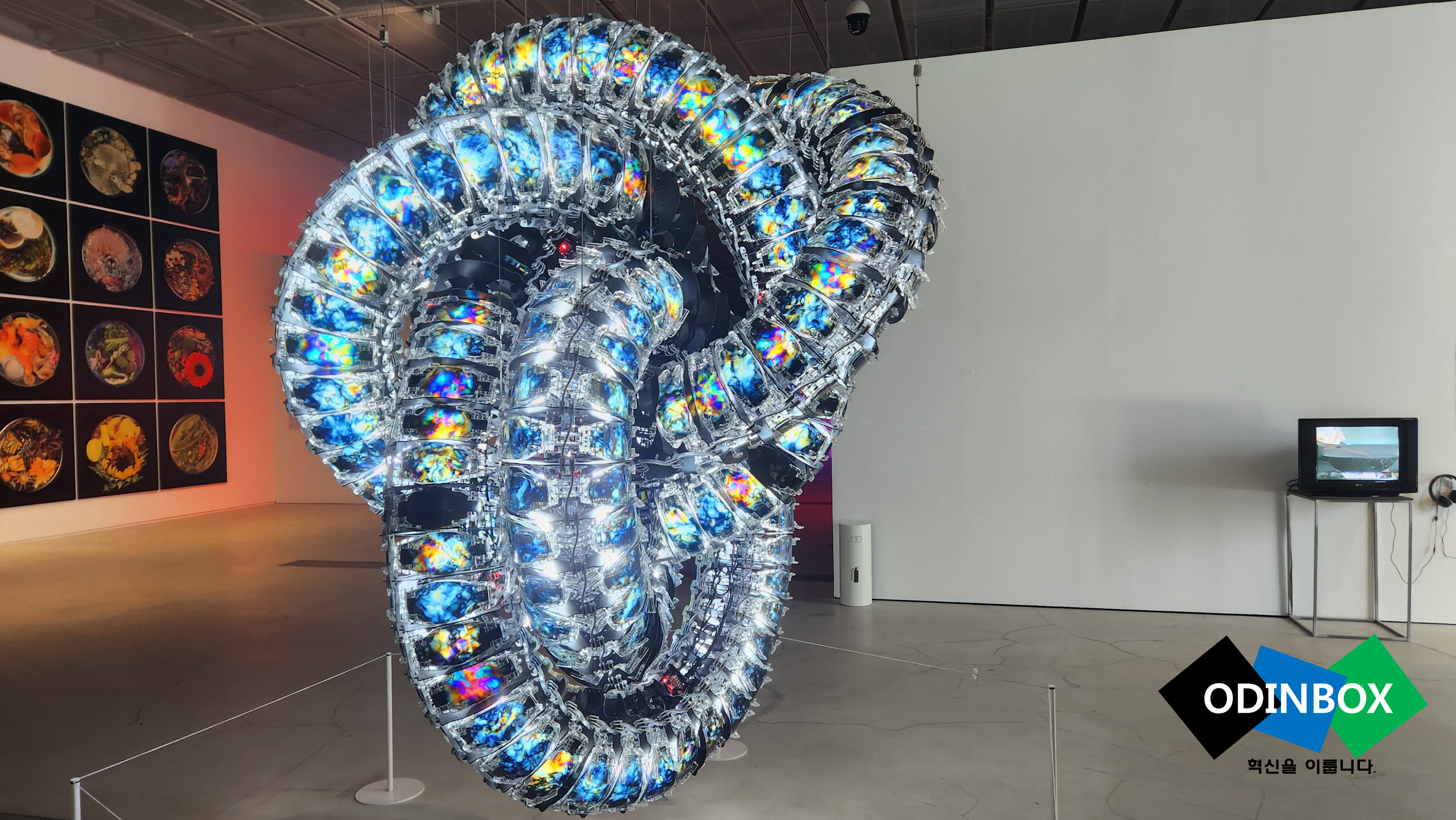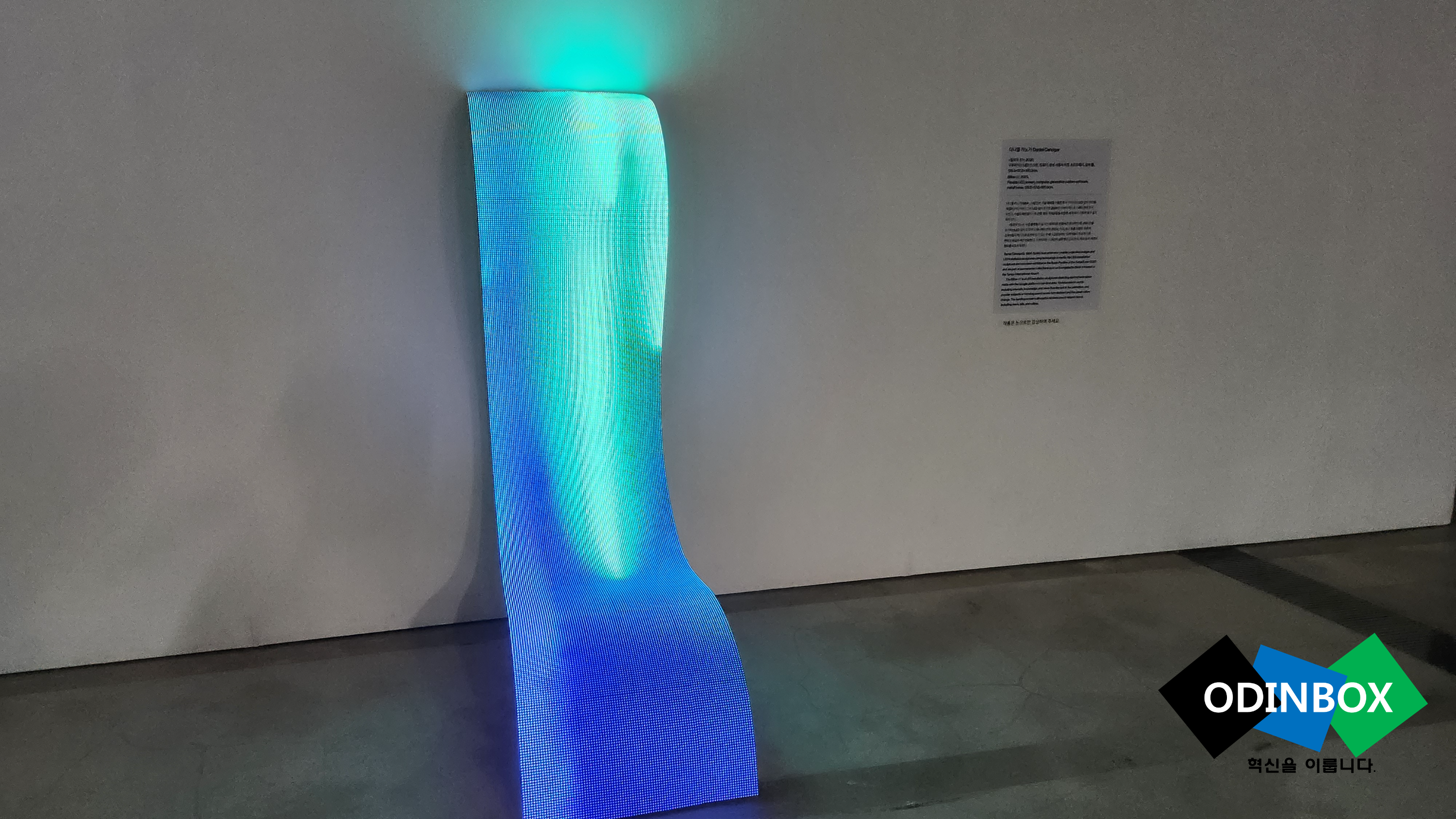 지하 1층 XR랩에서 전시되고 있는 뒤틀린 데이터입니다. 이 작품의 경우 공학자와 예술가가 만든 작품으로 공학기술과 단순히 예술을 구현하는 수단이 아닌 학제 간 융합을 통해 예술의 가능성을 모색을 한다라는 것으로 만들어져 있습니다.