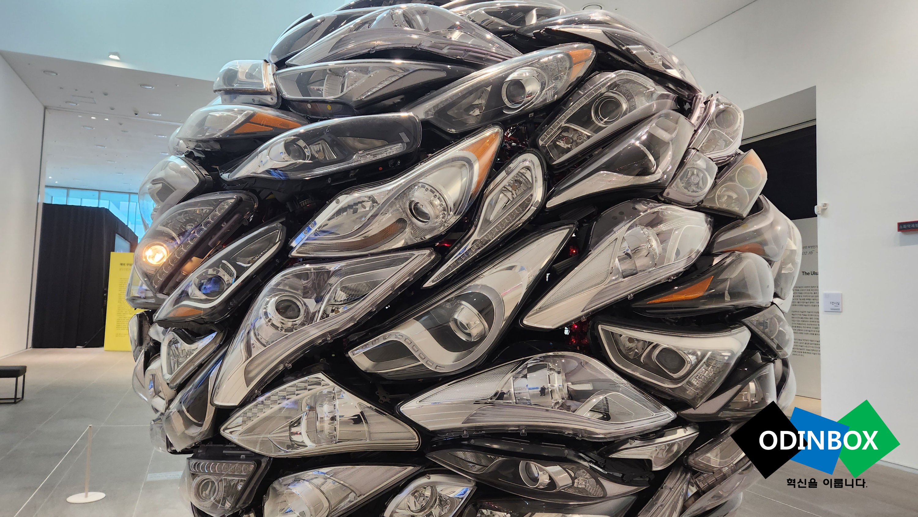 제2 전시실을 나오게 되면 바로 앞쪽으로 다른 전시실이 위치하고 있습니다. 이곳 가운데 있는 작품입니다. 자동차 헤드라이트로 만들어져 있는 모습으로 신기한 마음이 가득했습니다.