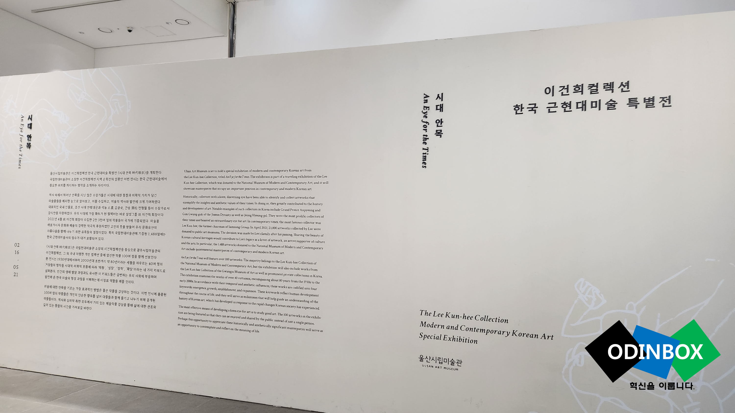 전시 설명 中 : 울산시립미술관은 이건희컬렉션 한국 근현대미술 특별전 《시대 안목 時代 眼目》을 개최한다. 국립현대미술관이 소장한 이건희컬렉션 지역 순회전의 일환인 이번 전시는 한국 근현대미술에서 중요한 위치를 차지하는 명작을 소개하는 자리이다. [박수근, 이중섭, 김환기, 유영국, 천경자 등 40여명]