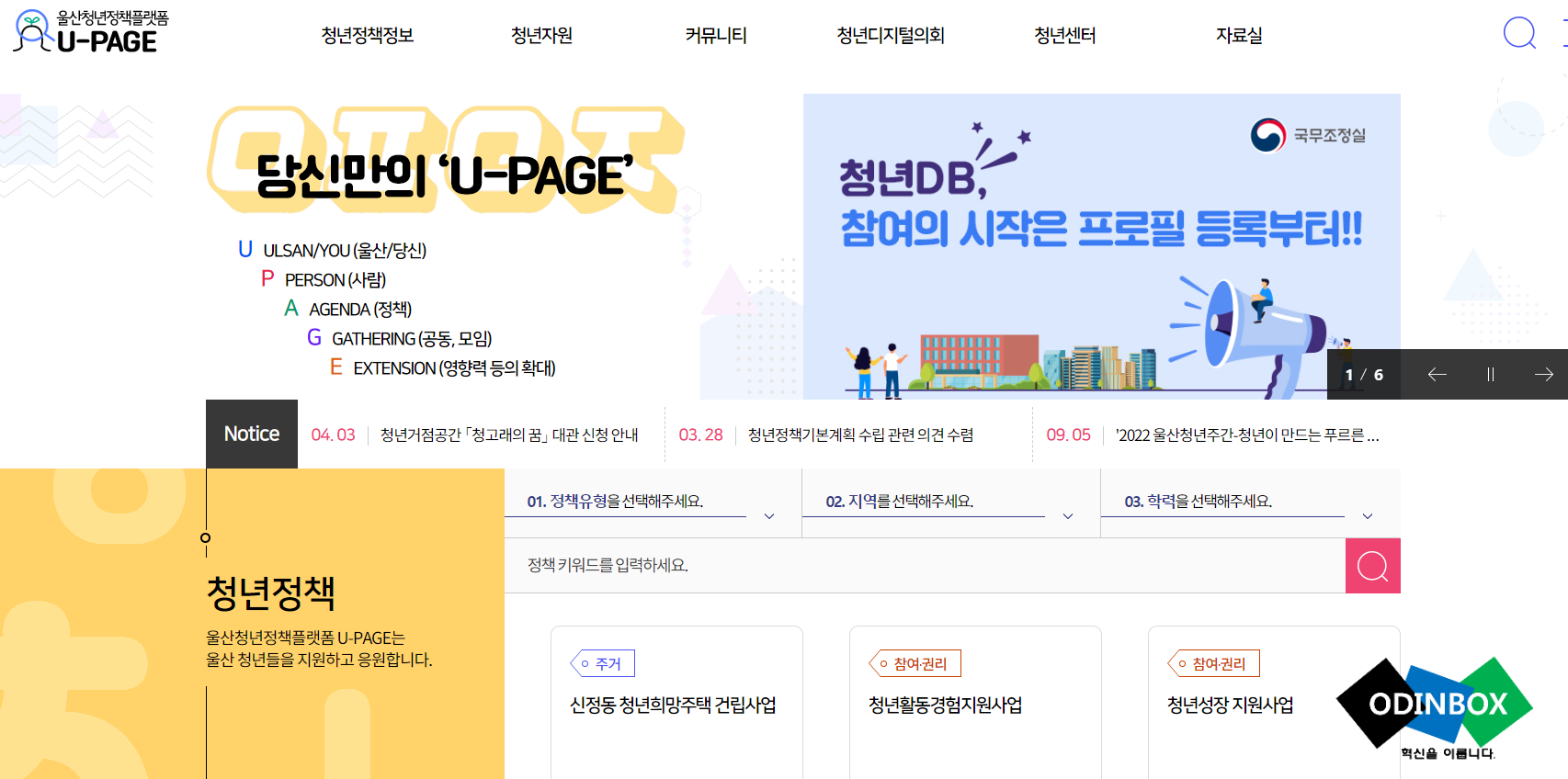 정부에서 운영하는 온라인청년센터라는 곳도 존재하고 있지만 각 지자체도 청년들을 위해 각종 서비스를 운영을 하고 있습니다. 그중 울산에서 최근 운영이 시작된 곳을 예시로 보도록 하겠습니다. 바로 울산청년정책플랫폼[#]이라는 곳입니다. 하지만 이곳은 홍보가 미흡하여 실제로 알고 있는 청년이 많이 없어 이용률이 저조하다는 기사가 많아 울산시에선 홍보방안에 고심을 하고 있는 것으로 알고 있습니다.