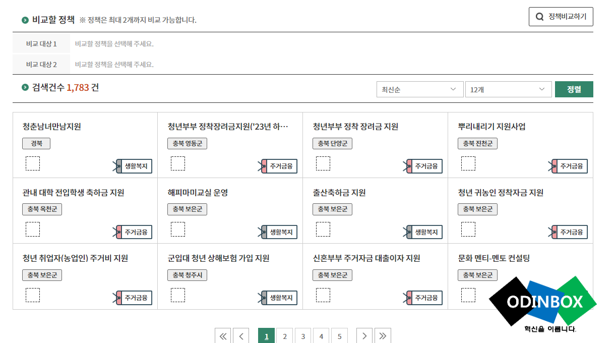그 밑으로 검색결과에 맞는 정책들을 바로 볼 수 있도록 결과가 나오는 것을 볼 수 있습니다.