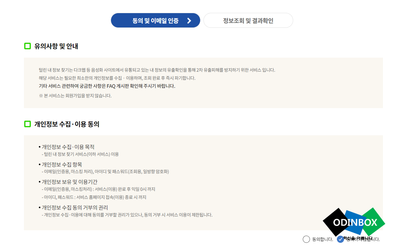 털린내정보찾기서비스(#)로 접속을 합니다.