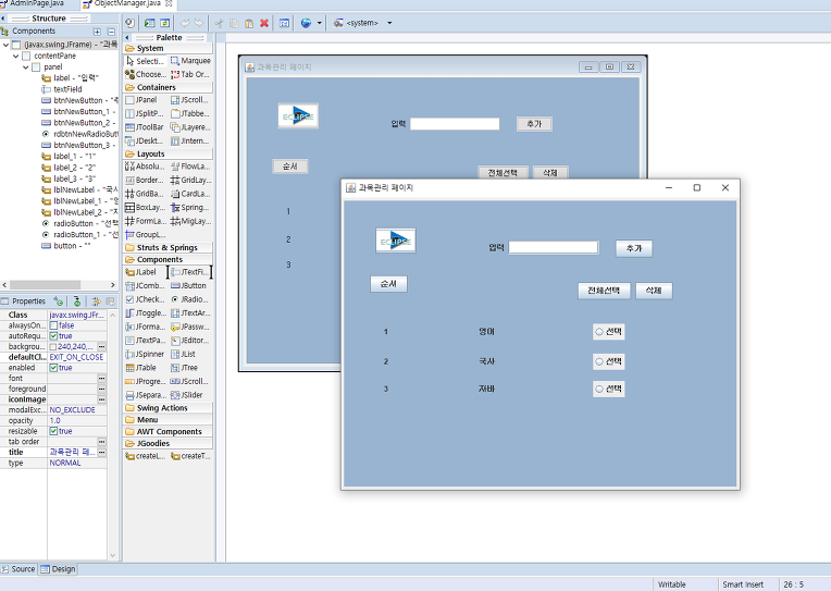 12 과목 추가 페이지 관리자가 과목을 늘리거나 줄인다