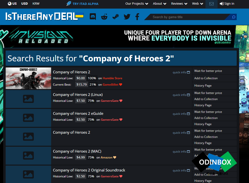 스팀에서 자신이 가지고 싶은 게임의 이름을 그대로 복사하여 IsThereAnyDeal에 검색을 합니다 그리고 원하는 게임을 선택하게 되면 화면에 할인이 되어 살 수 있는 가격에 대해서 나와 있습니다.