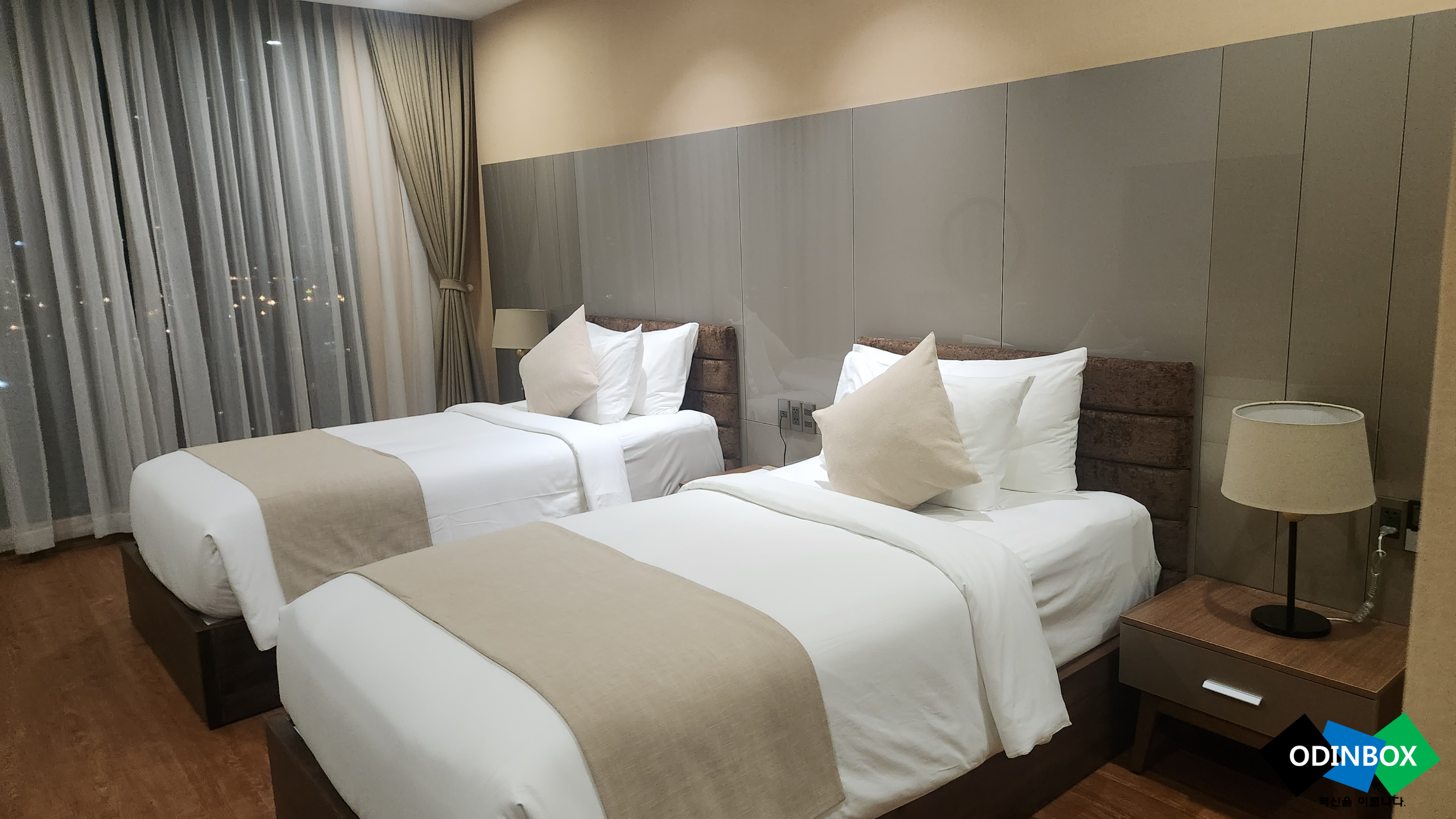 The place I will stay on this trip to Vietnam is Alan's Hotel. When I found out that it was Alan's Hotel before I came on a trip, I searched it and I heard that almost 80% of Koreans were there, so I thought it wouldn't be true, but when I arrived, I looked around, it was full of Koreans. The level I almost felt was like a Haeundae hotel, and the neighborhood was filled with a feeling of humility. But it feels like I'm just sleeping here, so I don't really care about that part, and it feels really neat from the first floor lobby. I've been assigned accommodation, but I've been assigned 21st floor. Strangely enough, Alan's hotel connects some rooms to the next room. The biggest disadvantage of this is that we can hear everything as if we're talking in our room after the sound from the next room. I recommend it if you use the next room with your family, but if it's not, I recommend you to ask in advance and find another room.