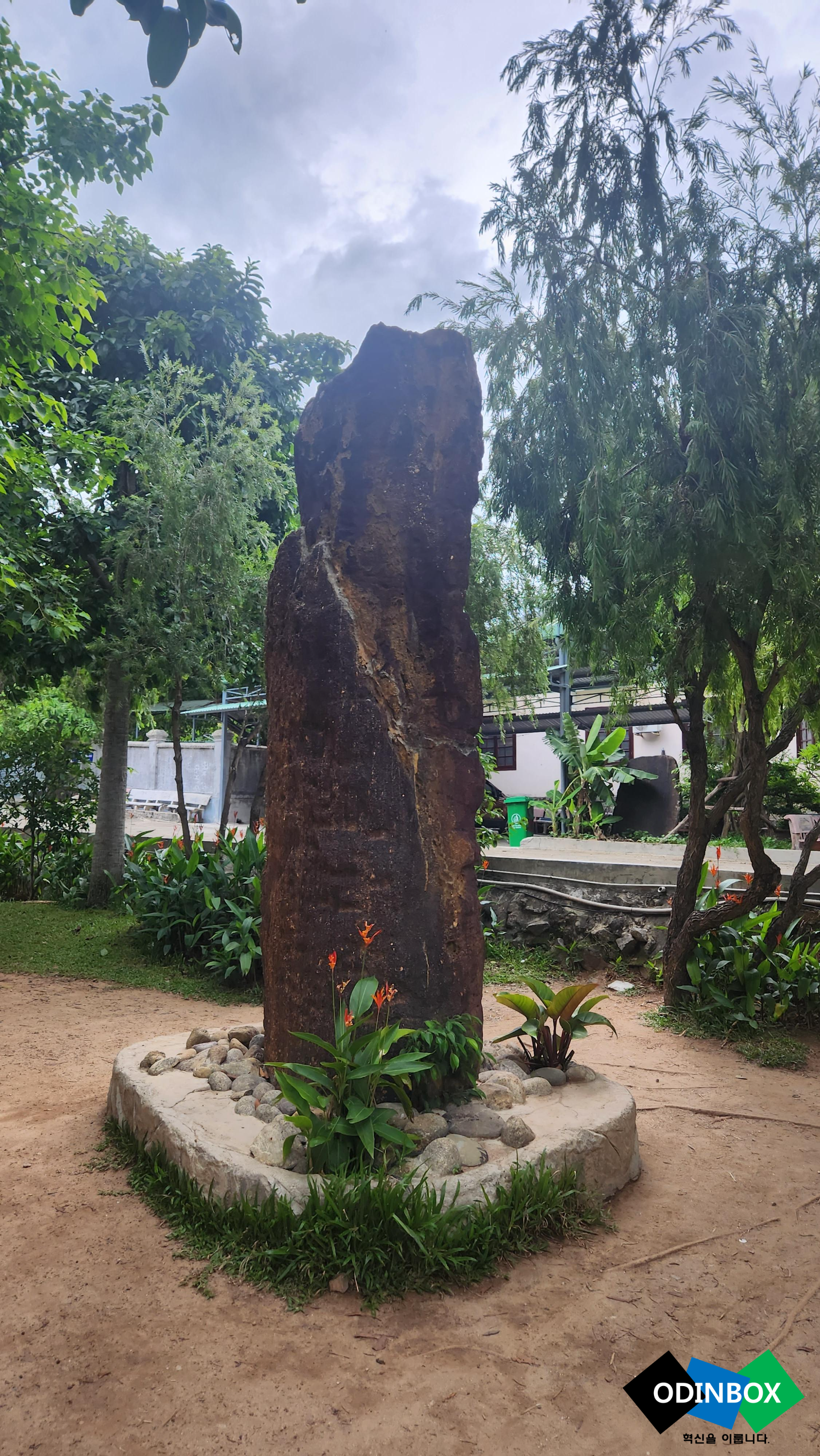 In the case of Marvel Mountain, it is called the English name of Five Mountains. In the case of the name that we know well, it's one of the names that we can get a little bit more commonly known as Ohaengsan Mountain. I arrive by bus and start getting off slowly. As it was my first travel destination, the guide prepared a Vietnamese hat, Nón Lé, and gave it to me. At this time, the sunlight was stronger than I thought and my face was hot, so I don't wear hats often, but I think I wore hats almost all the time at this time. In the case of Ohaengsan Mountain, it is located in the southern part of Da Nang, Vietnam, called Nguyen Xuan County, and the mountain is located along with a hill made of marble and limestone. I arrived at the entrance and went into the cave. If you look at this cave, there is a hole, and it is said that a hole was made in the cave during the Vietnam War due to the shelling of the U.S. military. Also, there were many sculptures made in the cave, so I walked around looking around. I thought of a cool cave, but I felt very humid and hot, and I had to walk carefully because the places I walked were slippery.