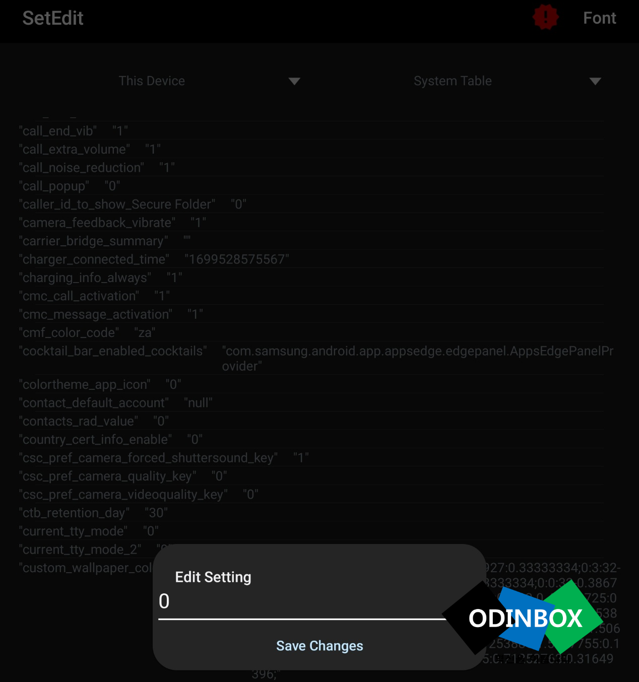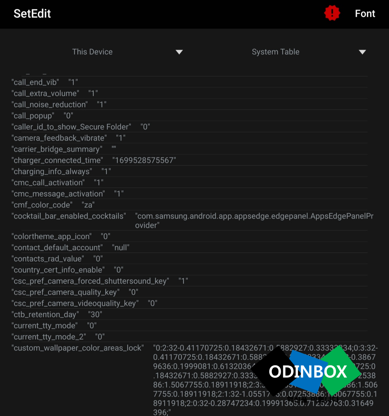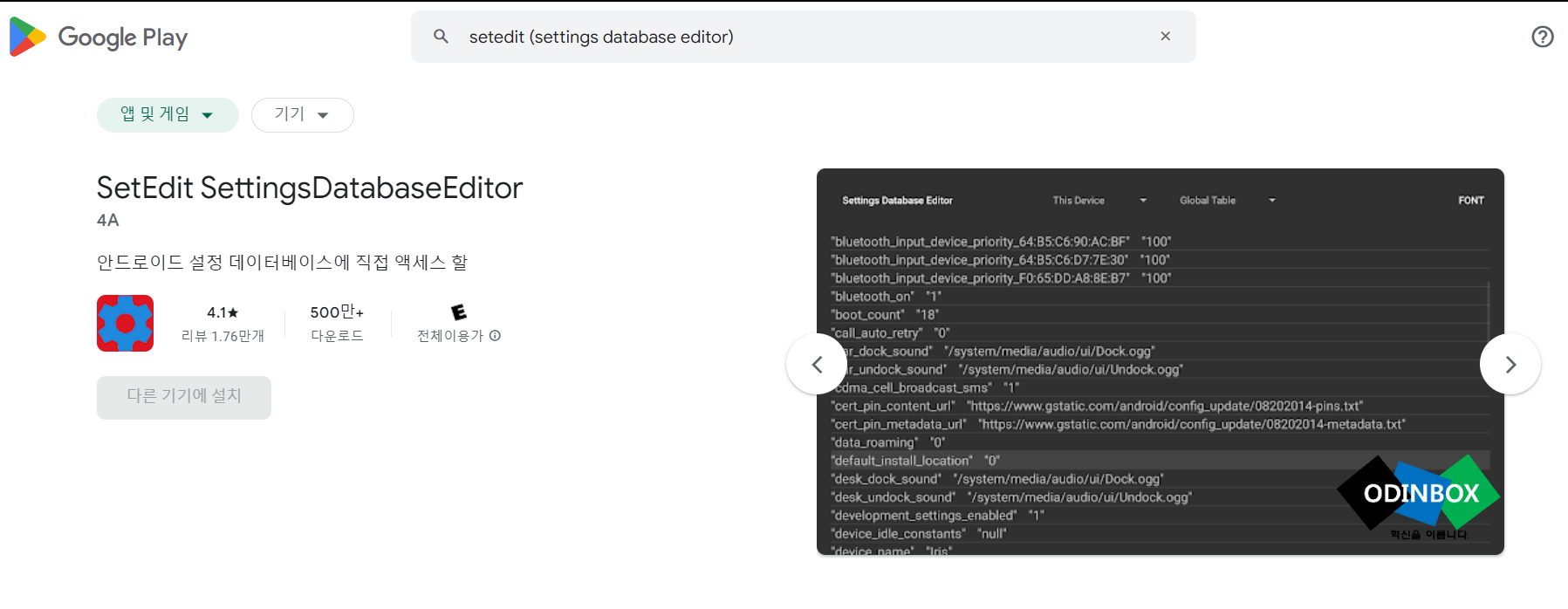 구글 플레이스토어에 SetEdit SettingsDatabaseEditor라는 앱이 검색이 되는데 해당 앱을 설치하시면 됩니다.