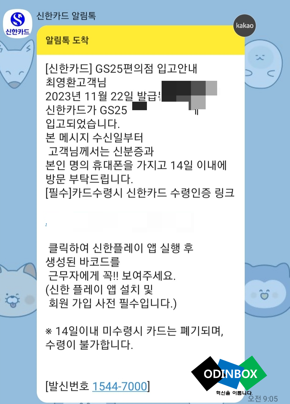 해당 문자와 함께 신한플레이에 있는 앱링크, 신분증을 반드시 지참하여 해당 편의점에 방문하여 신용카드 수령을 하러 왔다고 하면 아마 아직 편의점 근무자들이 많이 알지 못하는 부분이 있어 모르는 분들이 있을 수 있습니다. 그럴 때 알림톡을 통해 온 링크를 선택을 하면 친절하게 바코드와 함께 상단에 하는 방법(절차)이 있어 해당 글을 근무자 분에게 보여주면 쉽게 진행할 수 있습니다.
