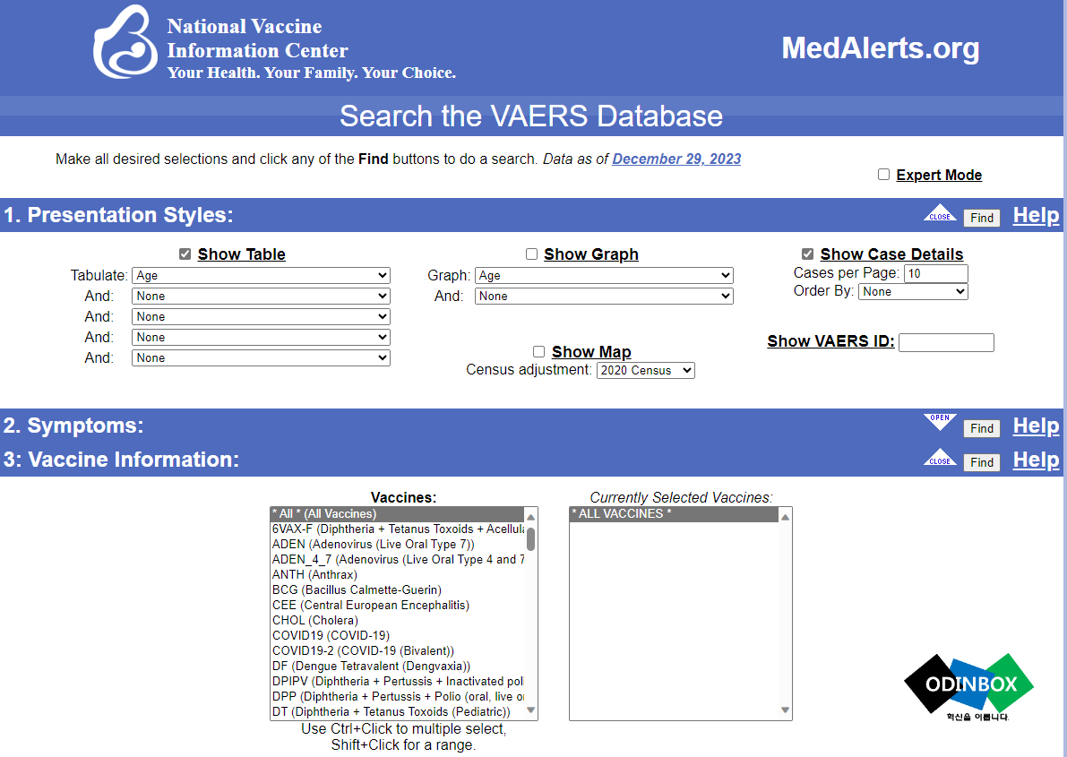 또, 해외에서 운영하고 있는 National Vaccine Information Center[#]를 접속을 합니다. 백신의 정보를 조회하기 위해 Search tehr VAERS Database를 선택을 합니다.