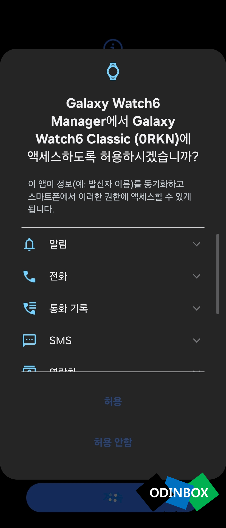 갤럭시 웨어러블을 사용을 하여 갤럭시워치와 연결을 하게 됩니다. 중간중간 허용과 함께 갤럭시 워치의 소프트웨어 다운로드 등 설정이 끝나게 되면 워치6 사용을 위한 준비는 끝이 나게 됩니다.
