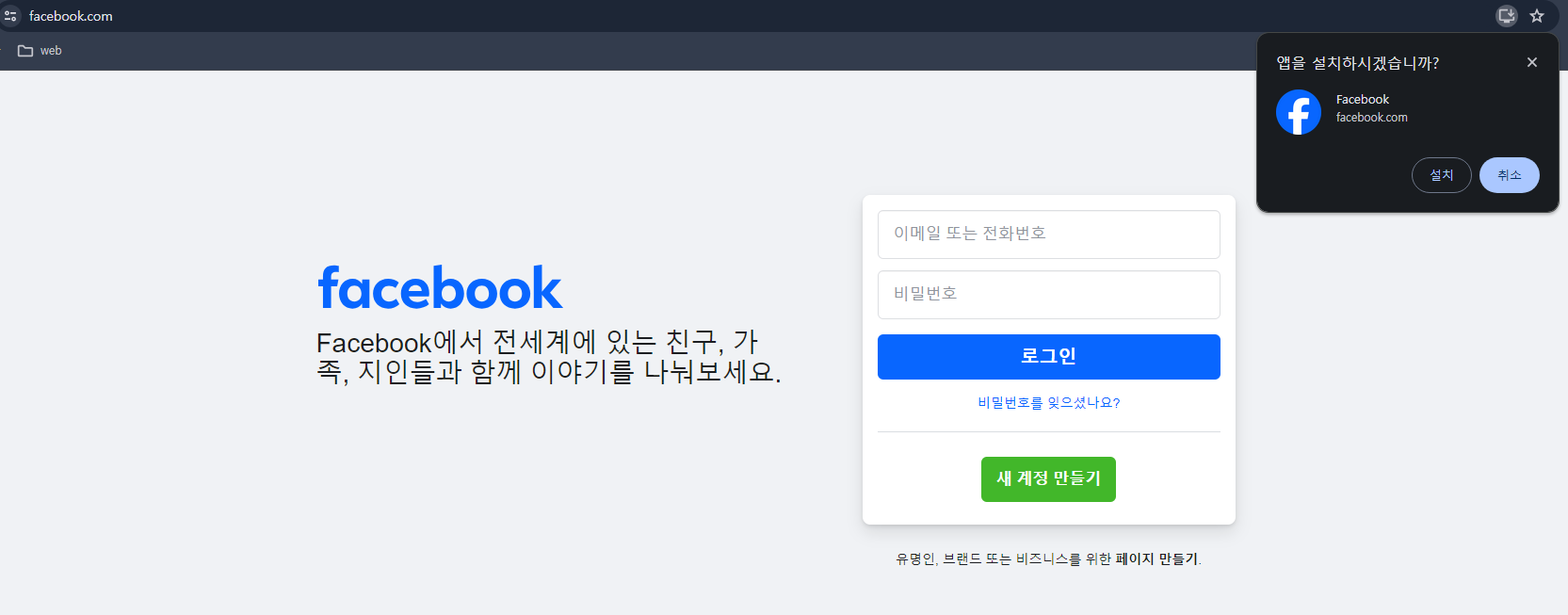 우리가 일상생활 속에서 PWA를 사용하는 사이트는 어떤 사이트가 있을까요? 제일 쉽게 볼 수 있었던 사이트는 현재 X(구 트위터)가 PWA로 지원을 하고 있었습니다. 그리고 지금은 많이 사용을 안 하고 계시지만 페이스북도 PWA로 지원이 되고 있습니다. 현재 접속을 해보니 페이스북은 아직 PWA를 지원을 하고 있고 X는 현재 확인을 할 수 없었습니다. PWA를 지원을 하냐 안 하냐를 볼 수 있는 간단한 방법은 위 사진과 같이 홈페이지를 접속을 했을 때 설치를 할 수 있는 아이콘이 표시가 됩니다.