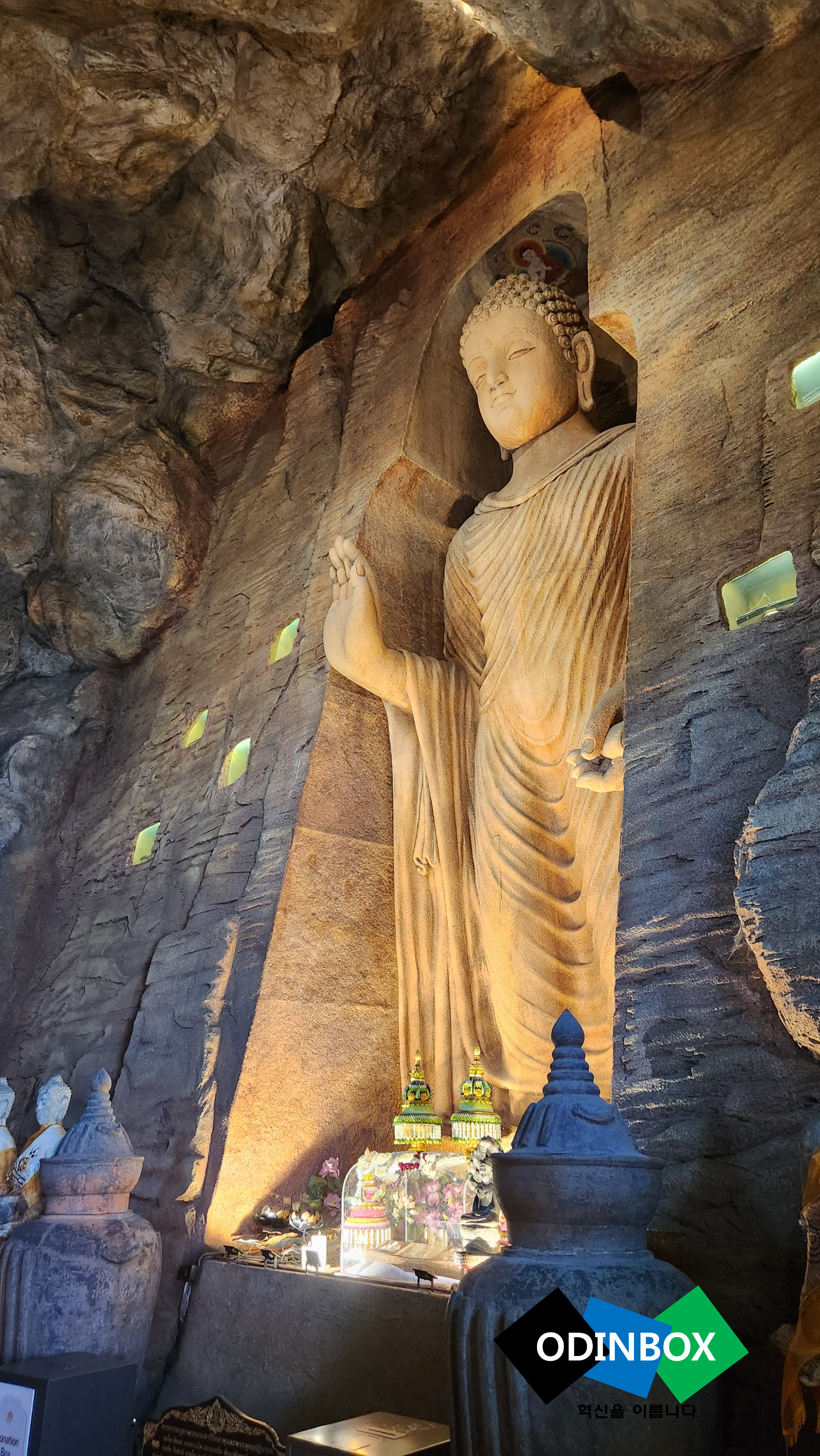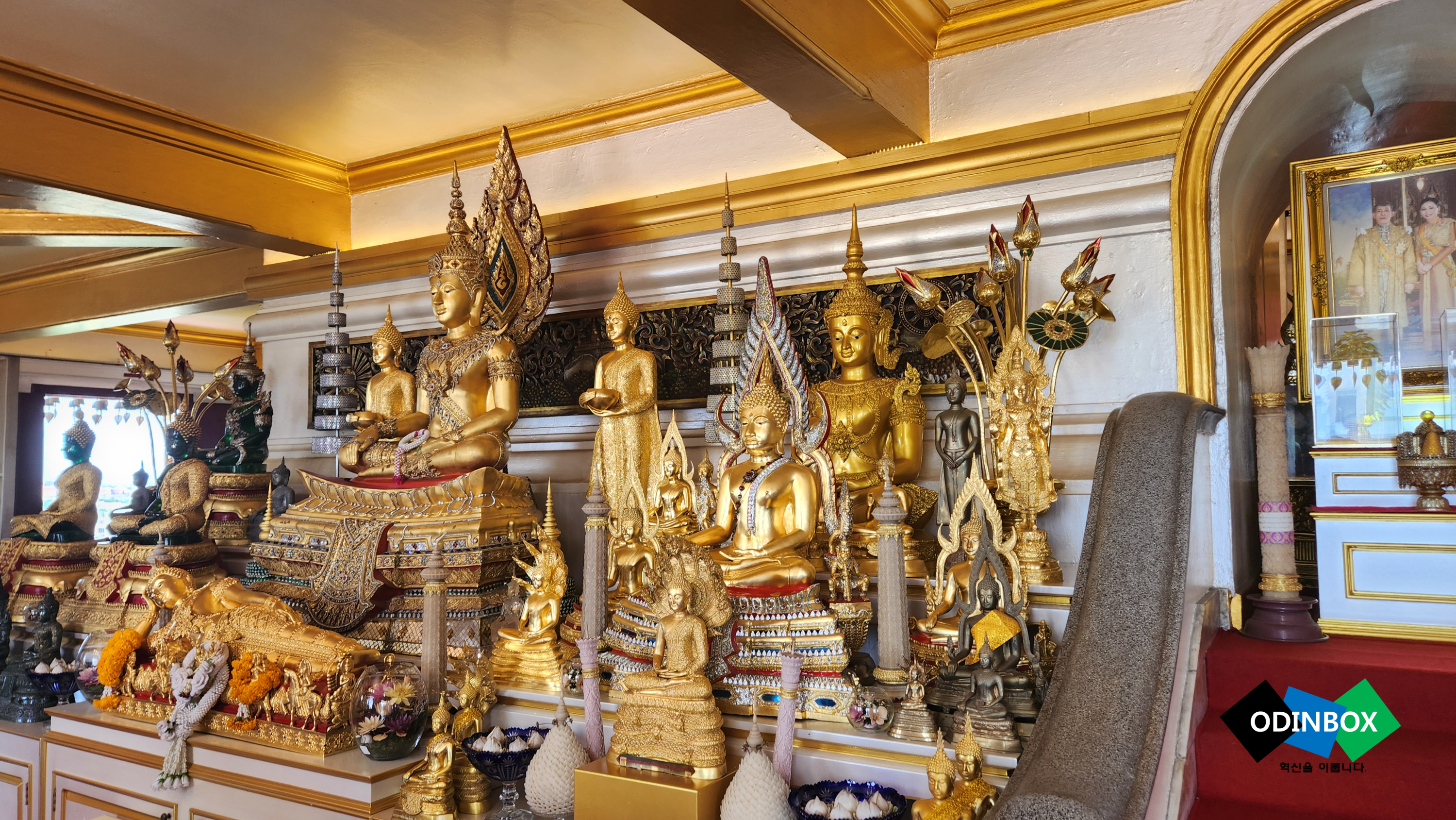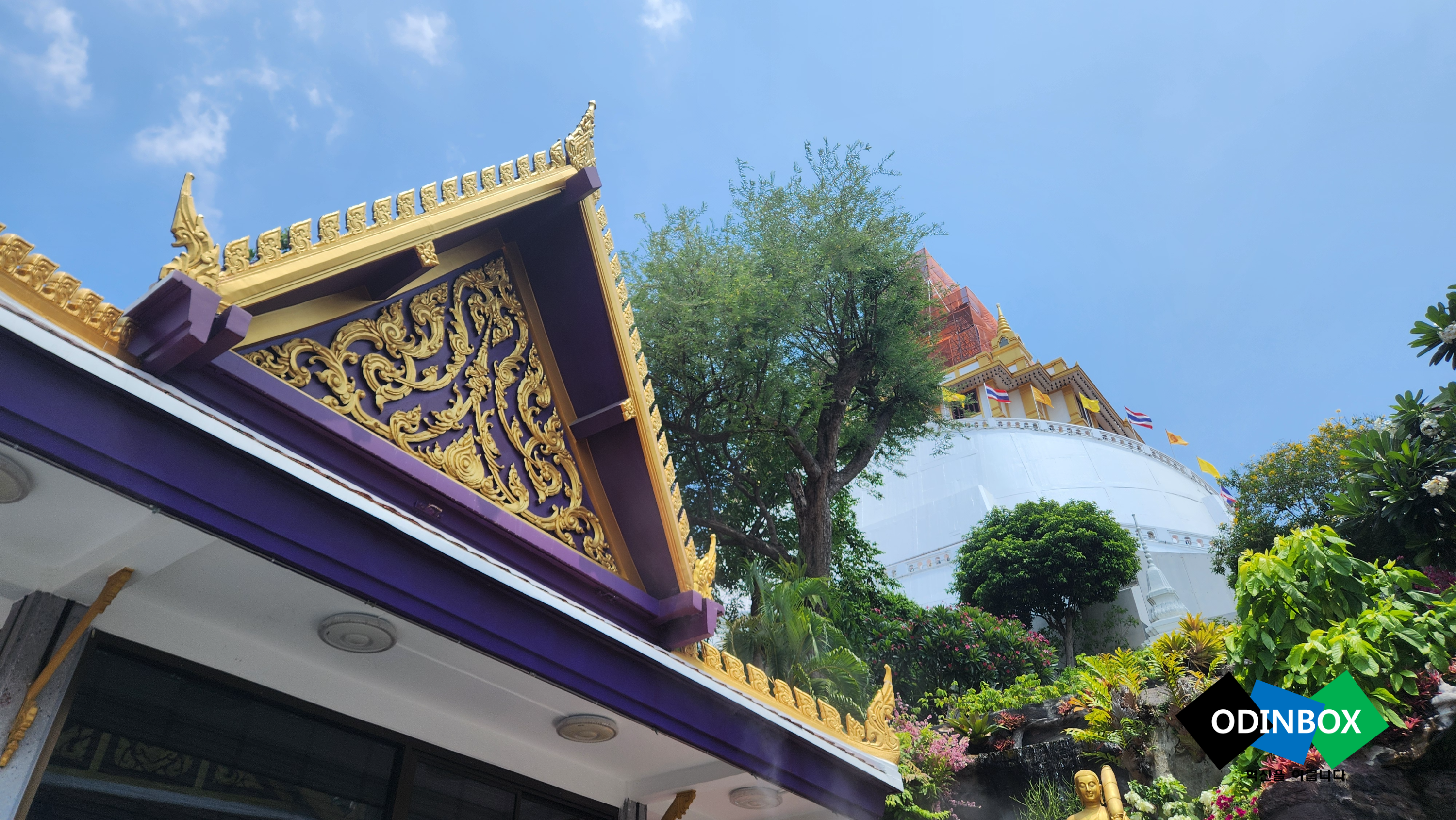 정신없이 씻고 잠을 자고 난 뒤 일어나보니 해가 떴습니다. 원래 한국에 있을 때도 아침을 항상 먹고 움직였는데 조식을 먹기 위해서 간단히 씻고 옷을 입고 조식을 먹을 수 있는 곳으로 이동을 해봤습니다. 평범한 뷔페 느낌이었고 빵 위주로 먹었습니다. 그래도 배 든든히 먹고 오늘의 일정을 시작해 봅니다. 제일 먼저 이동을 하게 되는 곳은 항금산사원(푸카오 텅) 및 동굴사원이 있는 왓사켓으로 이동을 합니다. 이곳은 진짠지 모르겠지만 가이드의 말로는 한국인 가이드는 들어갈 수 없다고 하여 태국 현지 가이드(지정된 사람만 가능?)가 같이 동행을 했는데 역시 한국인들이 많이 여행을 오다 보니 한국어 패치가 훌륭하게 잘 되어 있었습니다. 그렇게 입구를 도착을 하여 들어가는데 황금이라는 이름이 들어간 것처럼 황금색으로 화려한 모습입니다. 입구를 통해 올라가야 한다는 말에 굉장히 가파른 곳인 줄 알았는데 그렇게 가파른 곳은 아니고 천천히 올라갈만한 오르막 수준으로 되어 있습니다. 올라가는 길에 조형물(십이간지 등)이나 이 풍경이 굉장히 멋있다고 느껴지는 곳이었습니다. 맨 위로 올라가 주위를 둘러보면 방콕 시내 전경을 한눈에 볼 수 있고 생각보다 매우 시원한 바람이 불어와 기분 좋았습니다. 또 안에 각종 불상이 있습니다. 그리고 조그마한 계단을 통해 위로 이동을 하면 옥상이 있는데 방문했던 당일 공사를 하고 있어 주위를 완벽히 못 본 게 아쉬웠습니다. 정면에서 기도하고 손을 모은채 세 번을 돌아야 한다고 합니다 또 징이 있는데 징은 세 번을 울려야 한다고 합니다 아래에 내려가면 동굴이 있는데 동굴 안 불상들을 보고 기도를 하고 그다음 근처에 있는 사원이 있는데 이곳은 태국 사람들이 일주일에 한 번 와 기도를 하는 사원이라고도 합니다. 그리고 복장 제한이 있습니다. 그냥 평범하게 긴바지와 노출이 심한 옷은 가급적 피해 방문을 해주세요.
