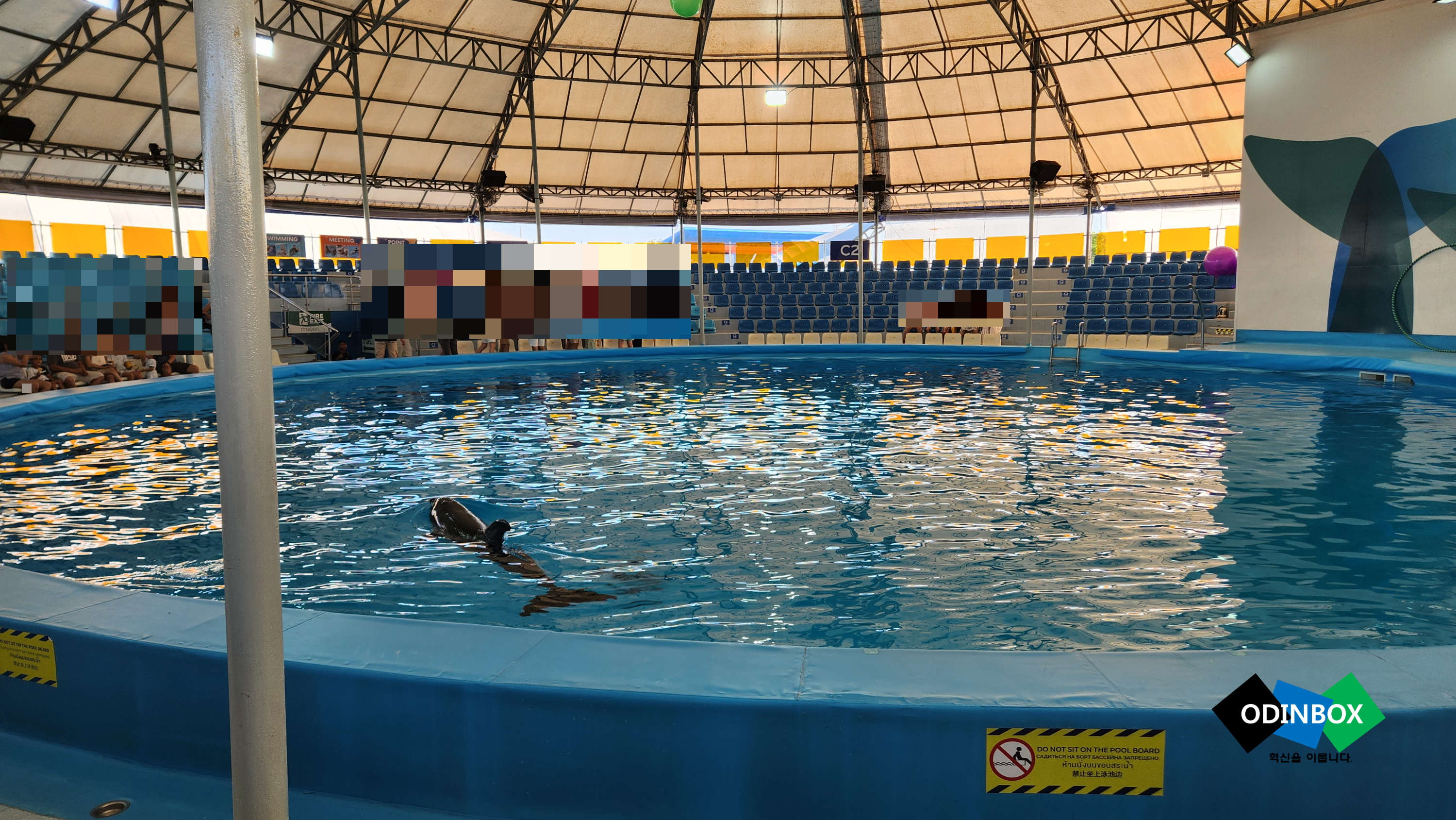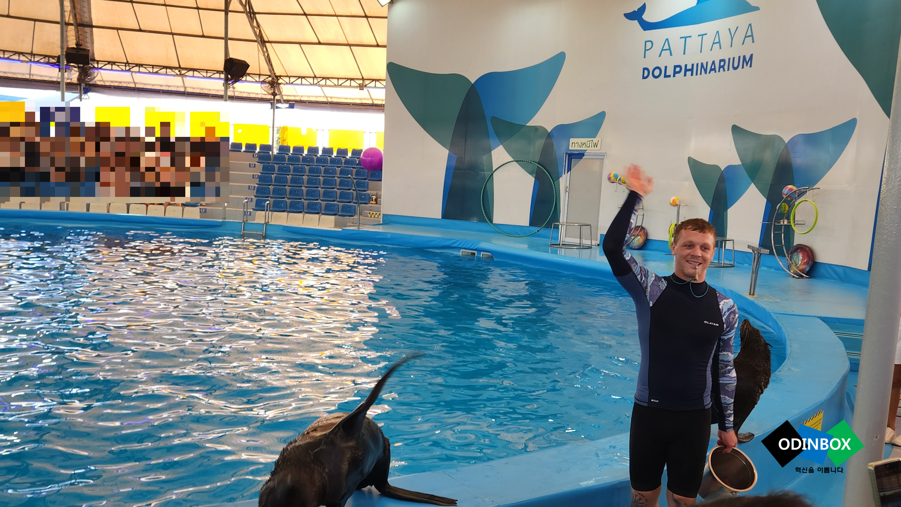 자 이제 저는 다음 장소로 이동을 버스를 탑승을 하고 이동을 합니다. 돌고래쇼를 보기 위해 이동을 합니다. 저의 경우 사실 한 번도 돌고래쇼나 물개쇼를 본 적이 없어 흥미가 생겨 기대가 되었습니다. 쇼가 진행이 되는 장소인 파타야 돌핀아리움에 도착을 해 안으로 이동을 합니다. 곧이어 쇼가 시작이 됩니다. 정말 훈련이 잘 되어 있는 물개, 돌고래라 그런지 쇼맨쉽이 정말 좋습니다. 중간중간 진행하는 사람들은 관람객을 향해 물을 뿌리며 흥을 돋게 하며 진행을 합니다. 제일 먼저 시작을 하는 것은 물개쇼인데 물개쇼는 돌고래쇼를 위해 흥을 모으는 단계 같은 느낌입니다. 약 1시간 정도 진행이 되었고 정말 재미있게 관람을 했습니다.