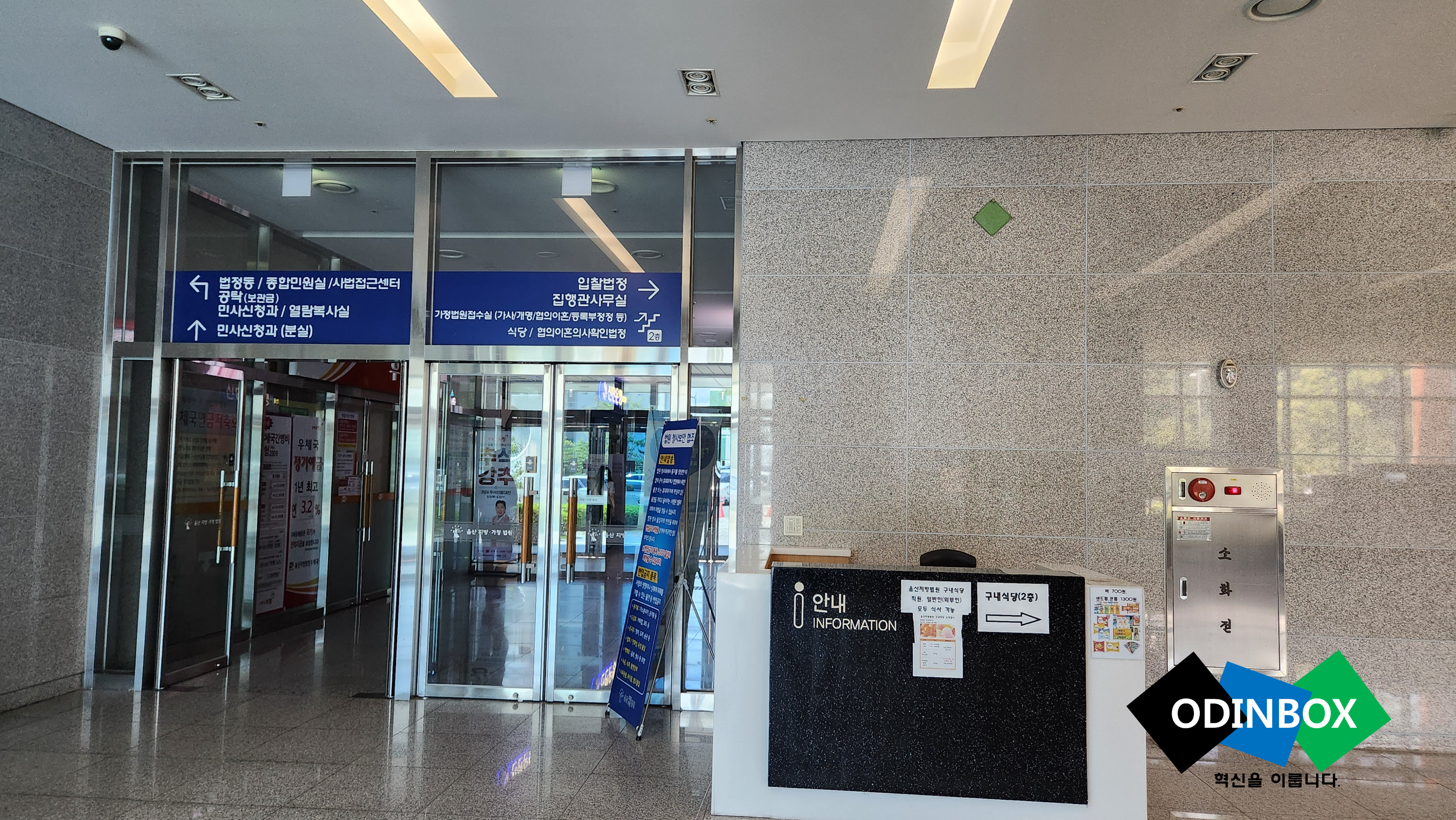 민원동으로 들어오게 되면 바로 마주치는 곳입니다. 앞으로 가면 은행들이 있는데 제가 방문을 했을 때는 12시 45분쯤 된 것 같은데 점심시간은 전부 운영을 하고 있지 않았습니다. 민원동 입구에 들어가 바로 오른쪽으로 보면 가정법원으로 가는 길이 있습니다. 엘리베이터나 계단을 통해 2층을 올라가면 됩니다.