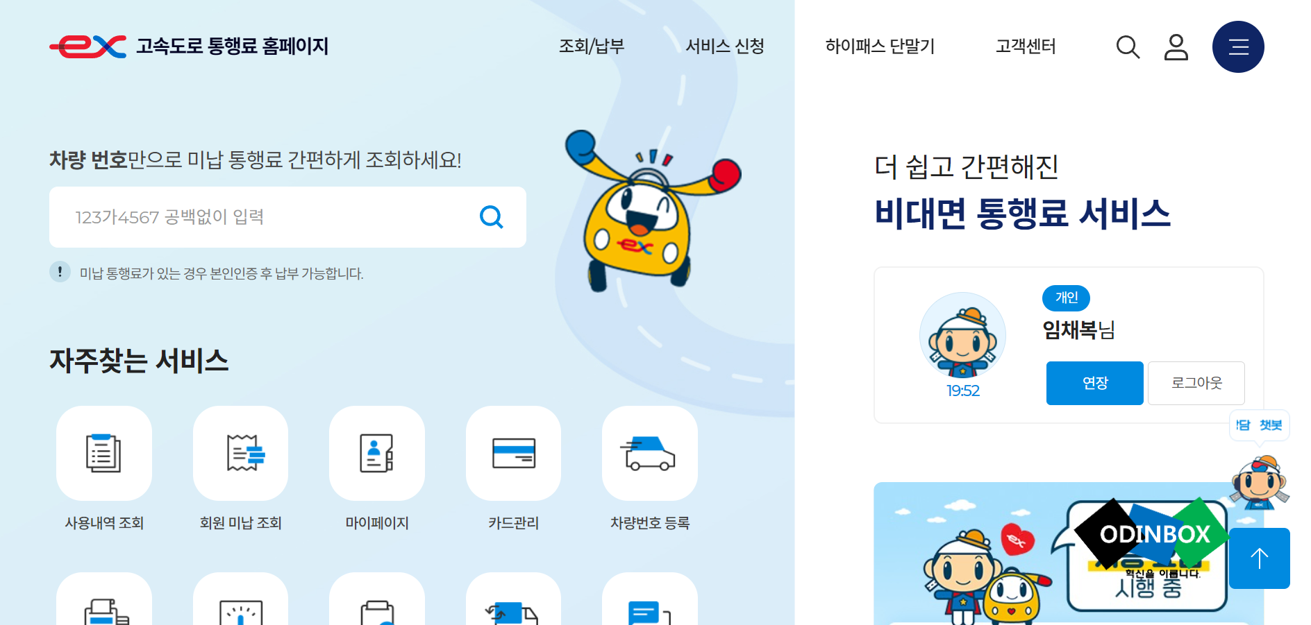 고속도로 통행료 홈페이지[#]에 접속합니다. 먼저 로그인을 진행을 합니다. 회원가입이나 SNS인증을 통하여 회원가입을 하고 아래에 맞춰 진행해 주세요.