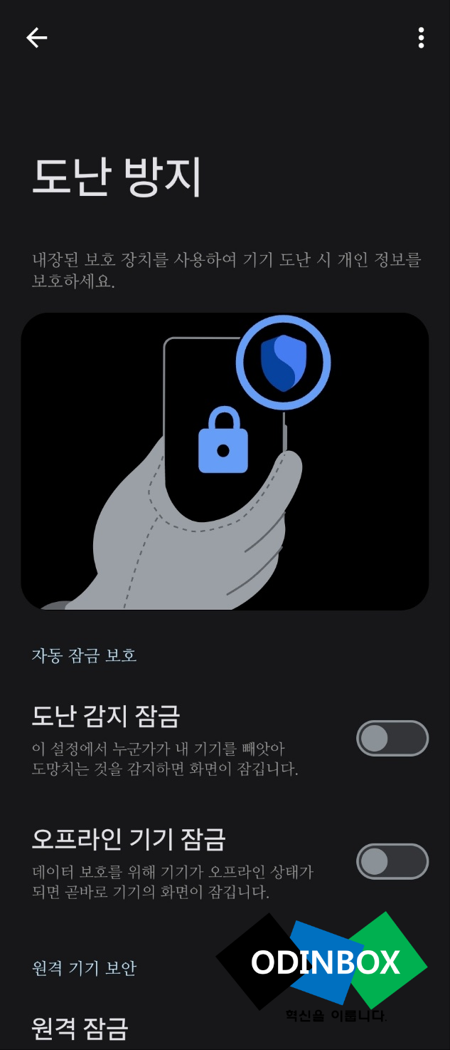 도난방지: "도난방지"의 기능에서 도난 방지 잠금, 오프라인 기기 잠금, 원격 잠금 등 필요한 보안 기능을 실행할 수 있습니다.