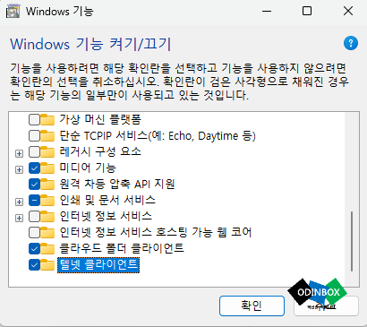 Windows에서 Telnet 클라이언트 활성화 방법