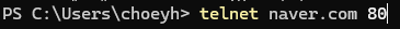 명령어 형식: telnet [IP 주소] [포트 번호]