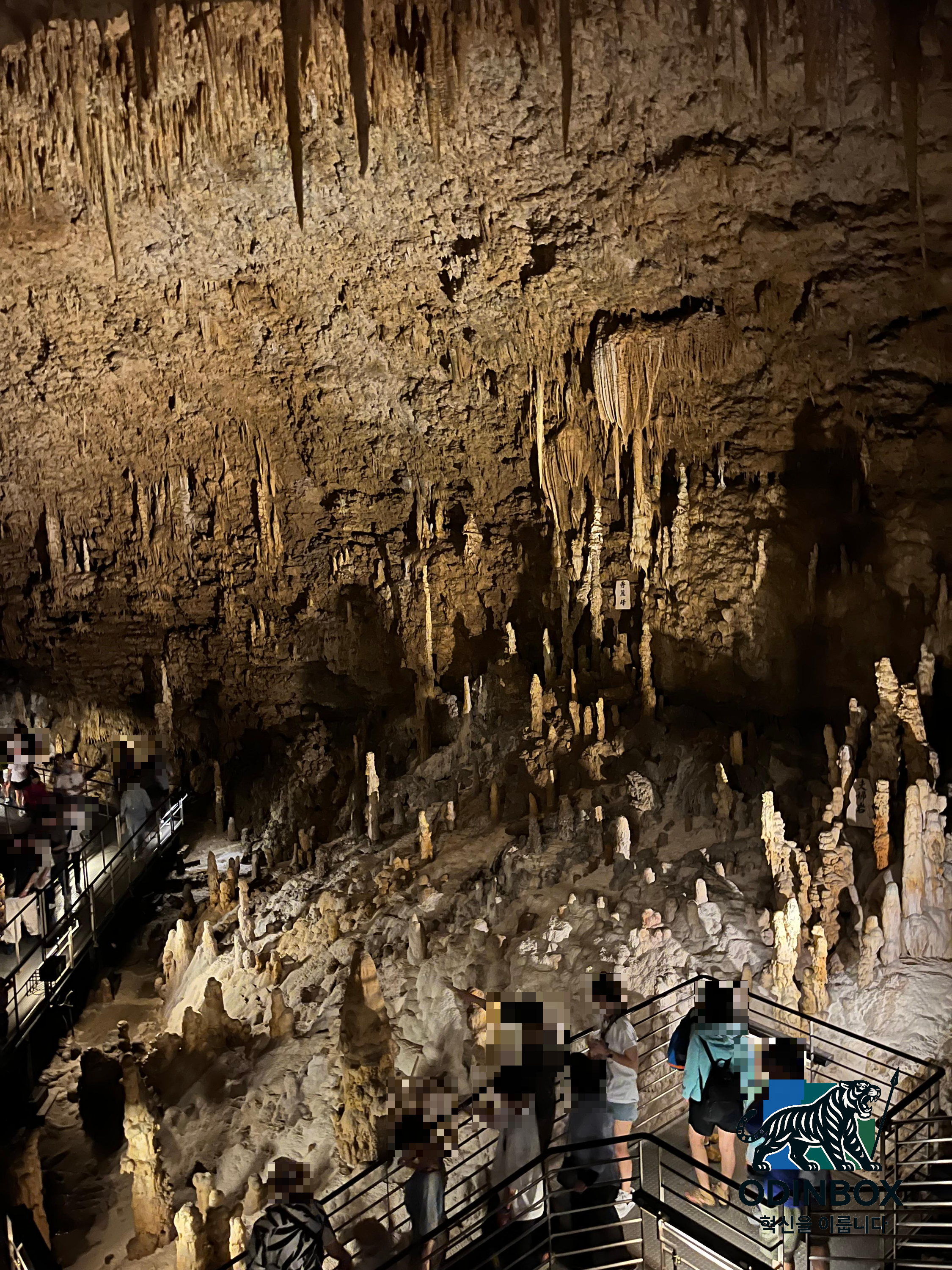 식사 후에는 오키나와 월드를 방문하였습니다. 이곳은 민속촌, 전통체험, 반시뱀 박물관 등이 있는 테마파크로, 특히 교쿠센도 동굴은 약 30만 년 전에 형성된 오키나와 최대의 석회동굴로 알려져 있습니다. 전체 길이는 약 5km이며, 그중 850m가 일반에 공개되어 있습니다. 동굴 내부는 평균 온도 21°C, 습도는 80% 이상으로, 장시간 걷기에는 다소 힘들 수 있습니다.