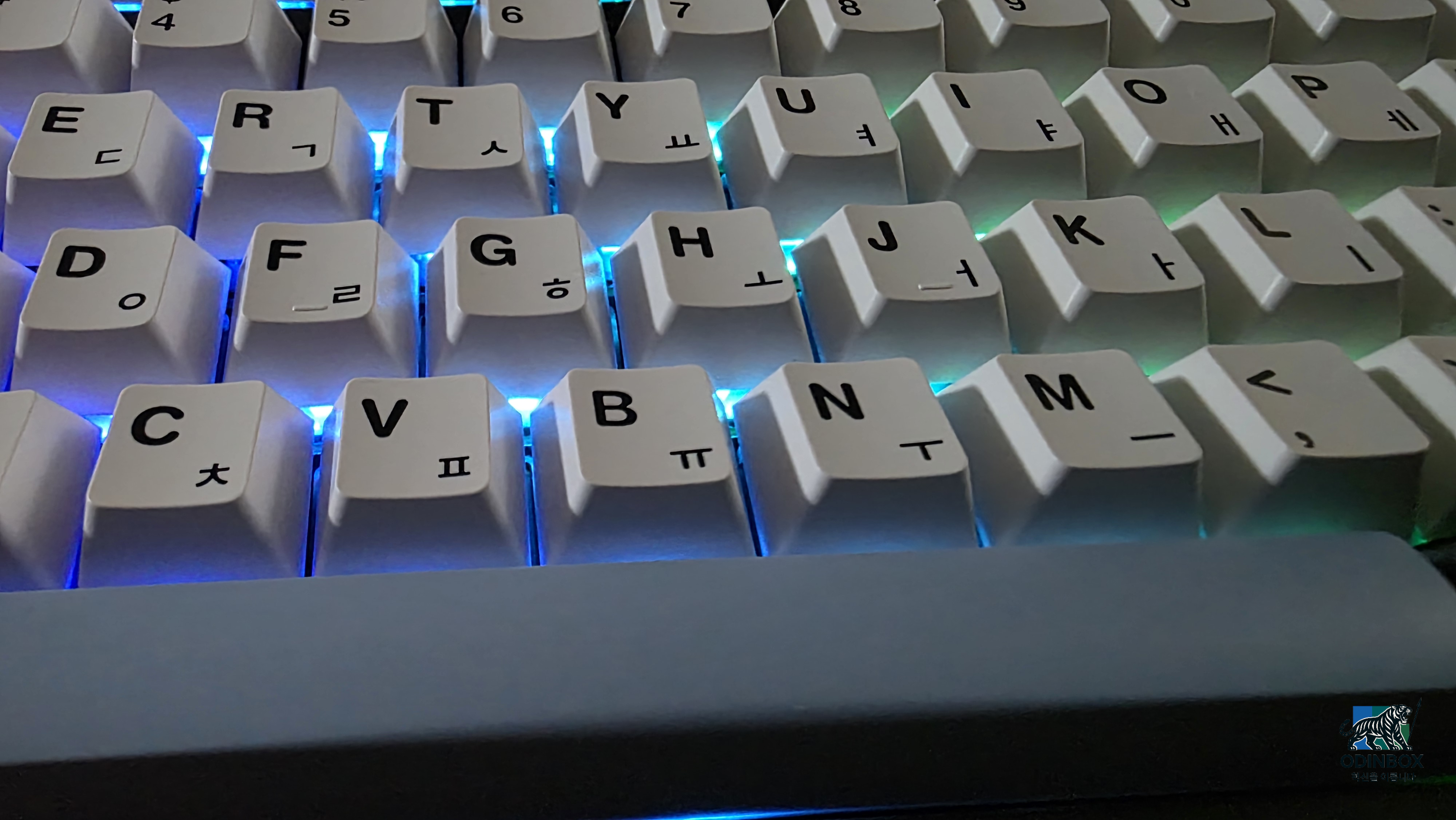 키캡은 PBT 재질 이중 사출 키캡으로 표면이 보슬보슬한 매트 촉감이라 오랫동안 타이핑해도 번들거림이 적을 것으로 보입니다. 영문과 한글 각인이 모두 깔끔하게 새겨져 있으며 LED 투과를 위한 부분도 이중 사출로 구현되어 있어 내구성과 실용성을 잡았습니다. 스위치는 제가 선택한 LEGBOG 경해축을 사용을 하고 있습니다. 핫스왑 소켓 덕분에 원하면 스위치를 쉽게 뽑아 다른 스위치로 교체할 수 있습니다. 핫스왑 소켓은 3핀, 5핀 타입 모든 기계식 스위치를 지원하여 향후 다양한 축으로 커스텀할 수 있다고 하고 스테빌라이저도 기본은 플레이트 장착이지만 원한다면 나사식으로 교체 호환이 가능하다고 합니다. 전반적으로 외형과 마감, 빌드구조면에서 가격대를 뛰어넘는 신경 쓴 모습이 인상적이며 이것이 이 키보드가 가성비 괴물이라고 불리는 이유 중 하나라고 생각이 들었습니다.