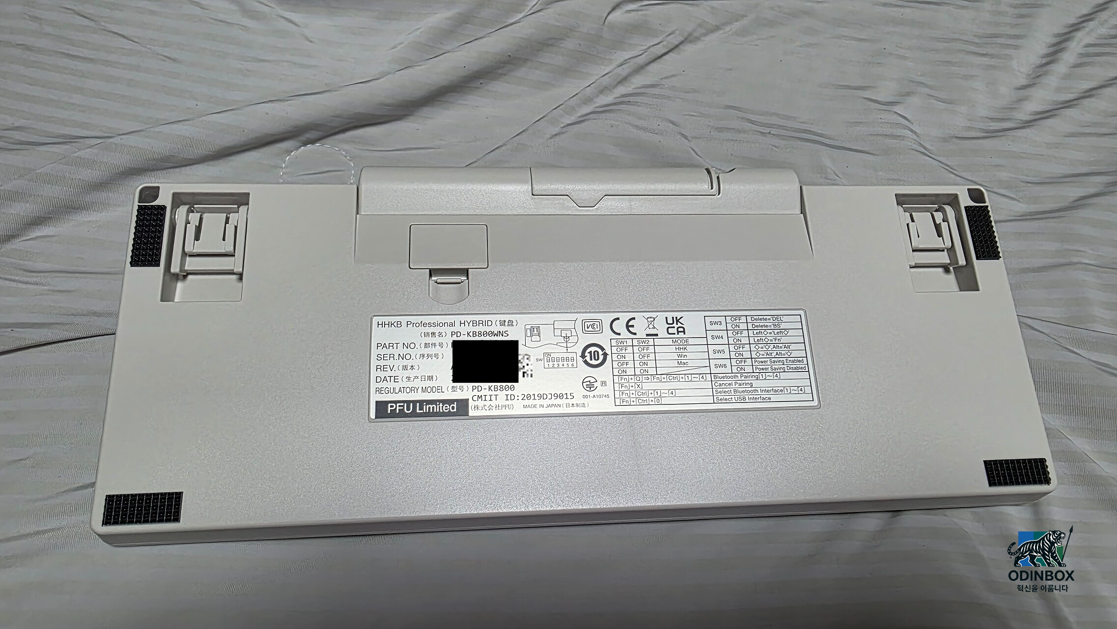 HHKB 뒷면의 DIP 스위치에서는 Windows / macOS 모드, Delete/Backspace 위치, Alt/Command 위치, 절전 모드 등을 설정할 수 있습니다.