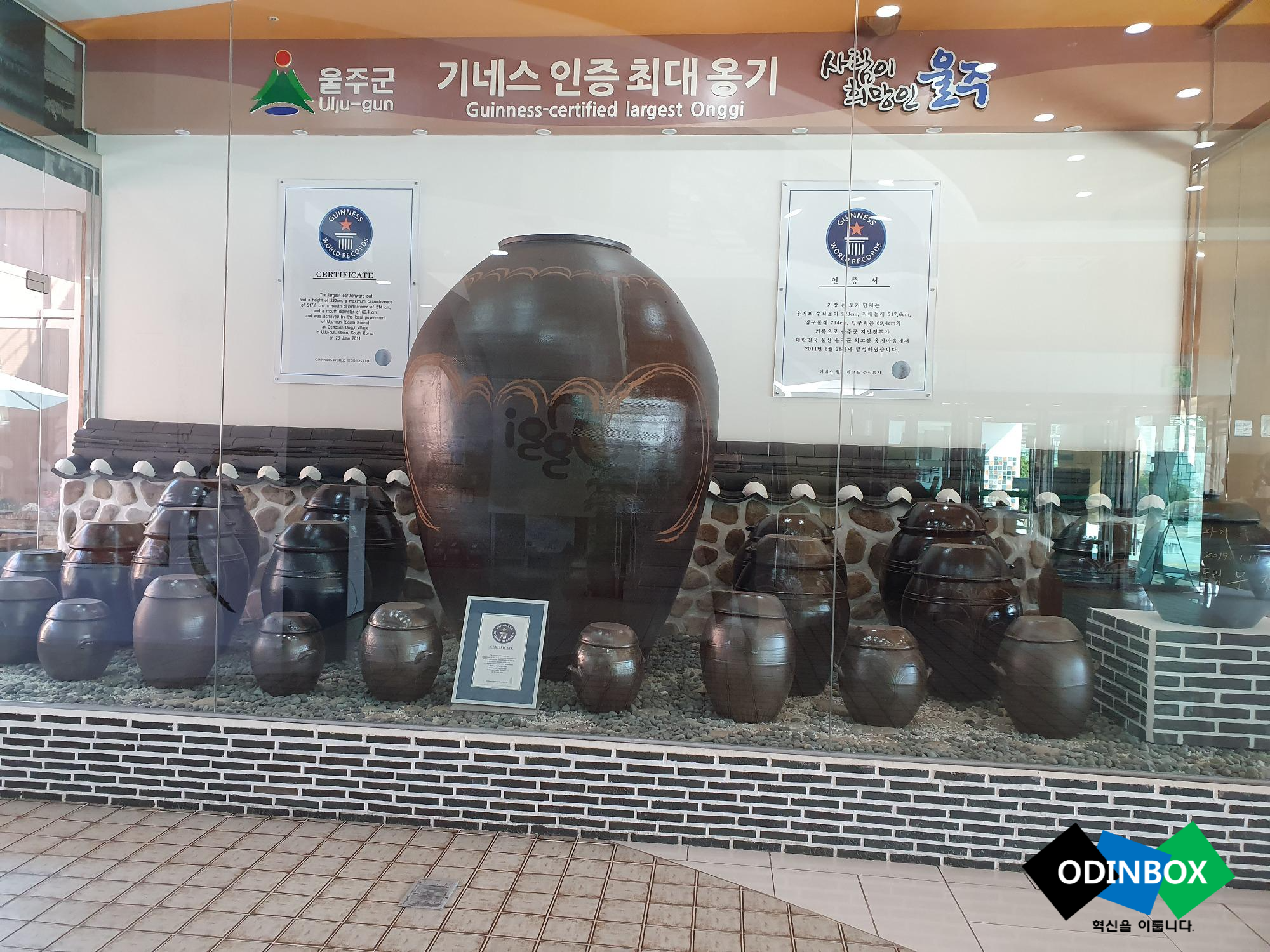 이제 안으로 들어가봅니다. 입구에는 기네스에 올라간 최대 옹기가 전시되어져 있습니다 실제로 보면 엄청 크게 느껴집니다.